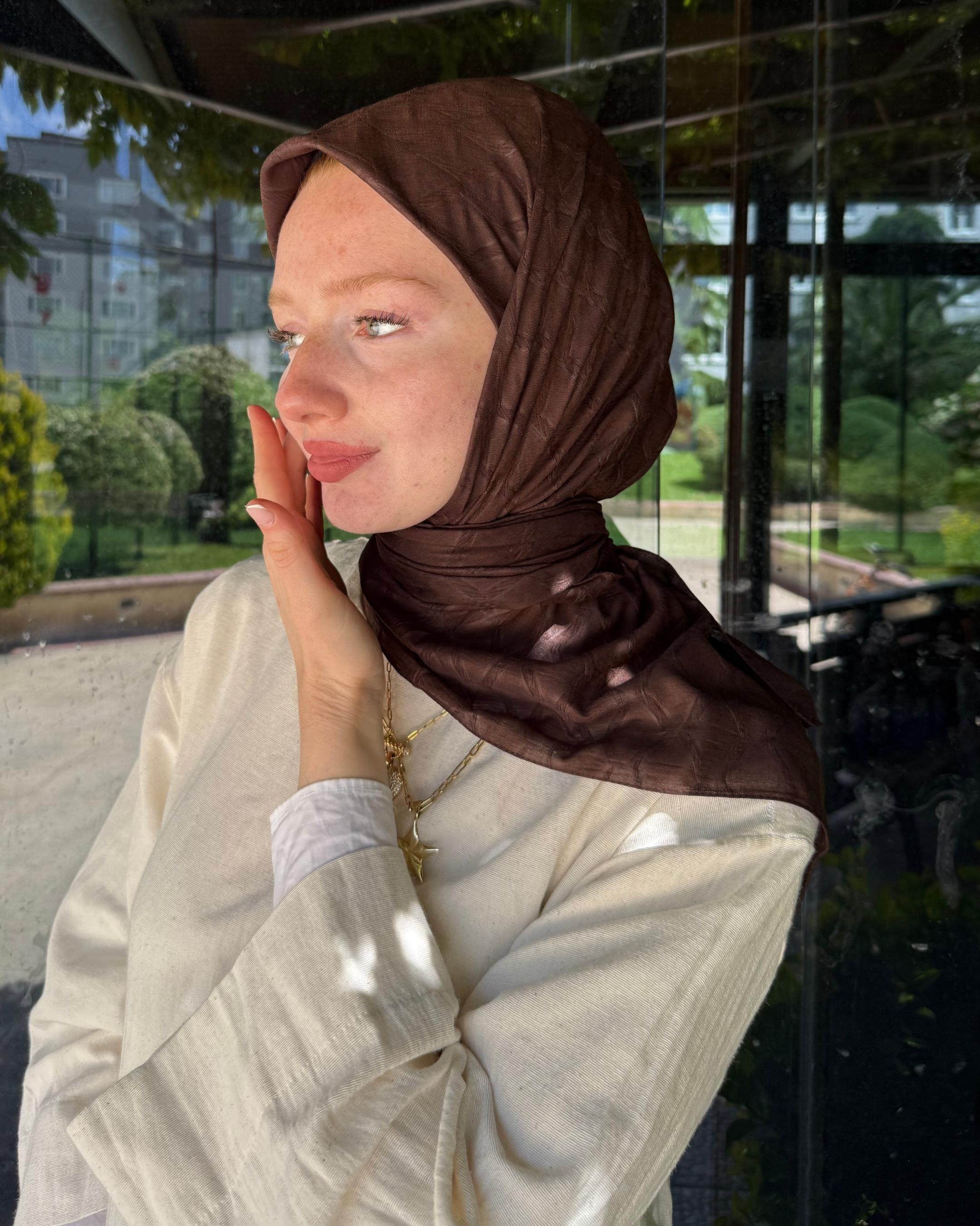 Acı Kahve Baklava Lyocell Bambu Jakar Eşarp (E-LYOCELLBAKLAVA-16)