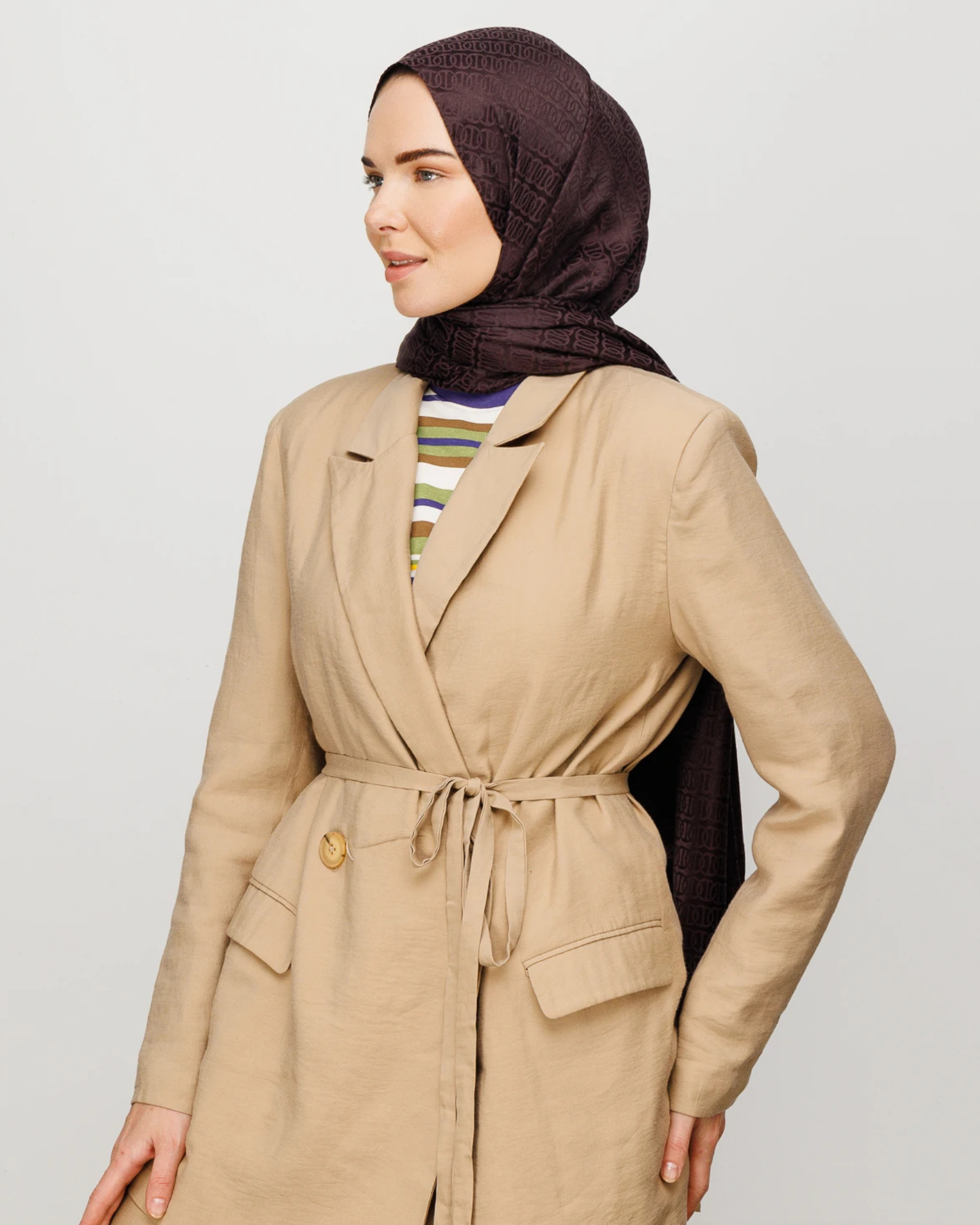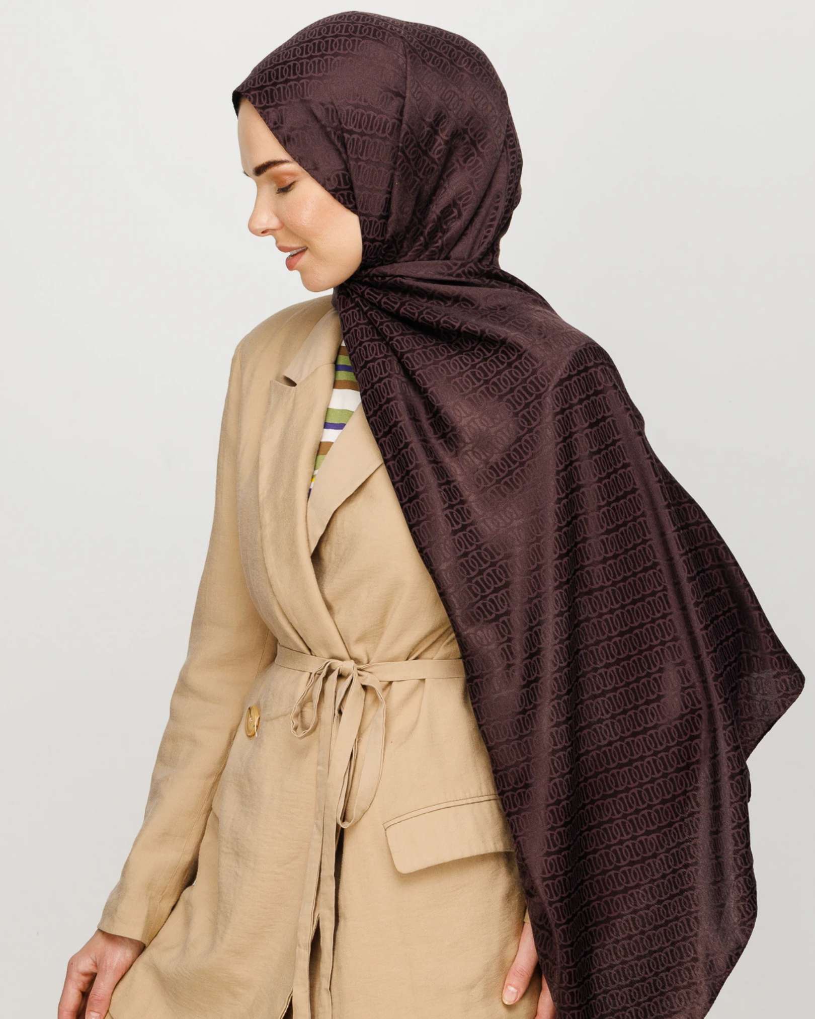Acı Kahve Forever Desen Parlak Jakar Şal (JKRMNC0018)