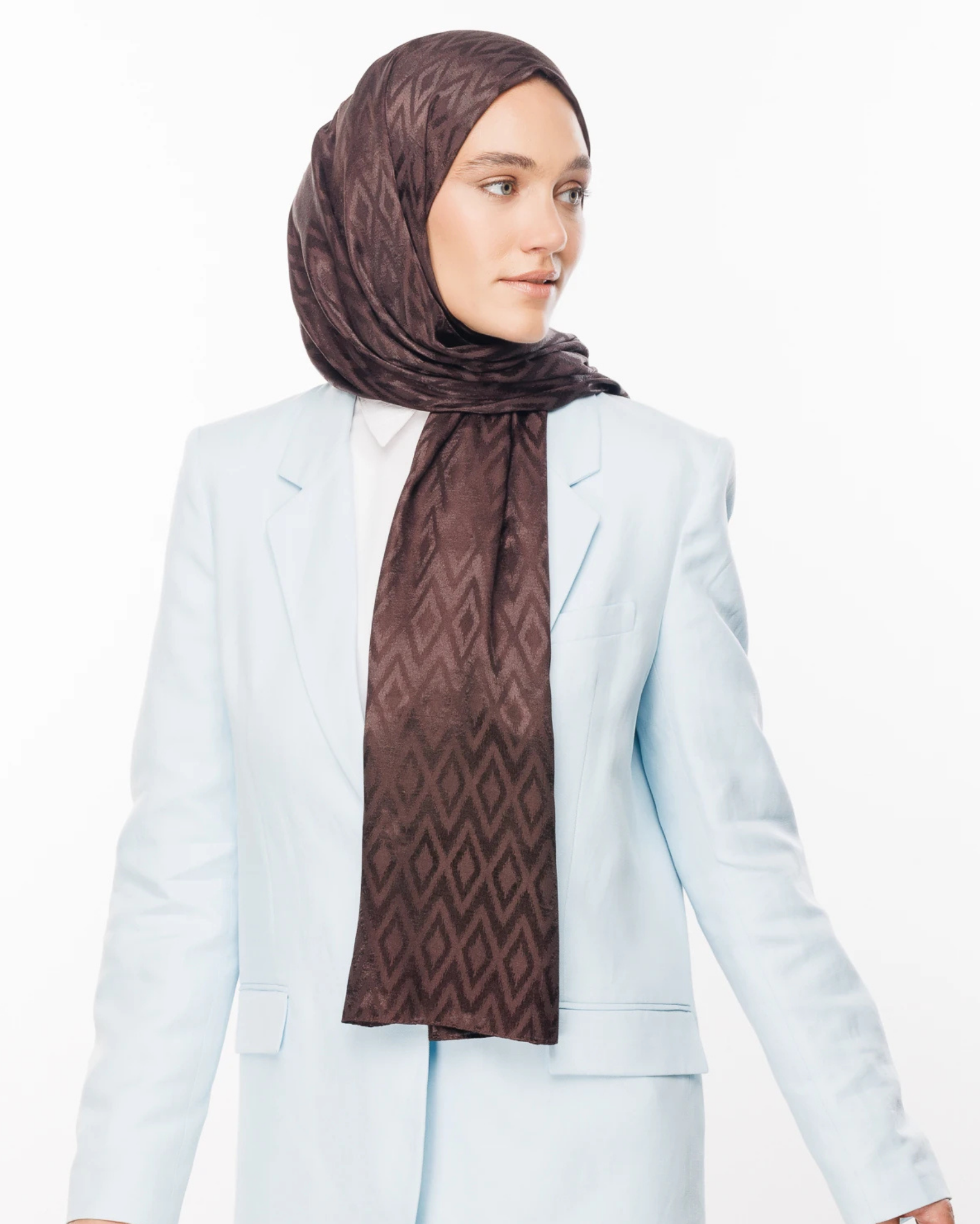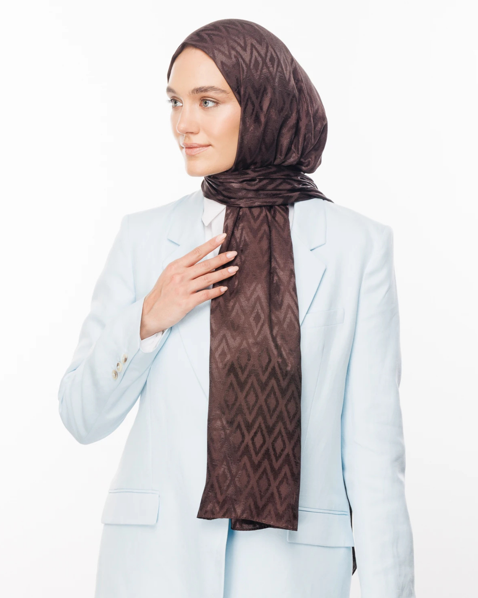 Acı Kahve Karo Desen Parlak Jakar Şal (JKRMNC0015)