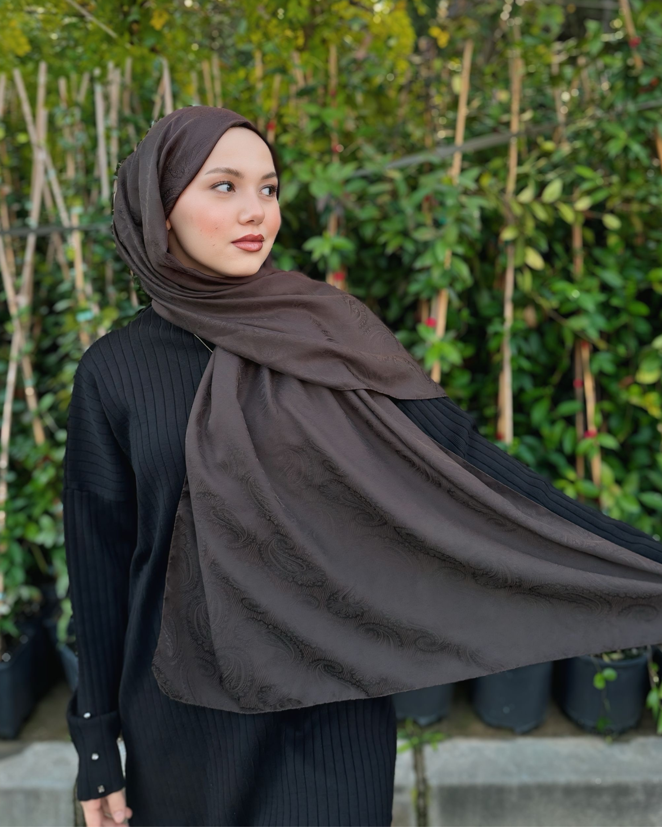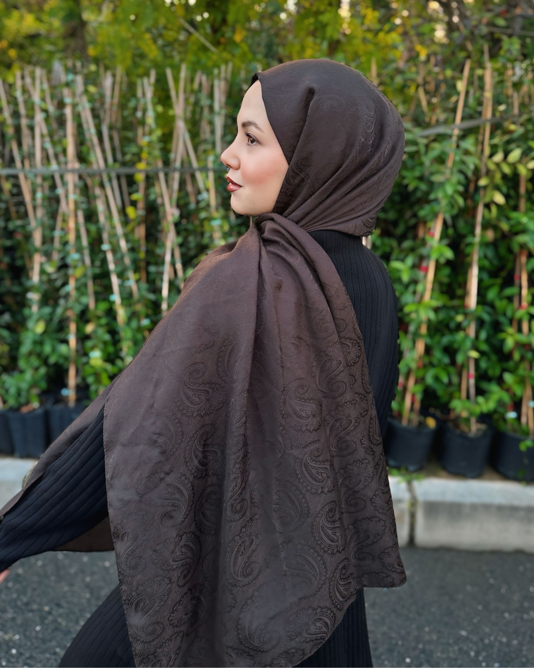 Acı Kahve Rumi Desen Jakar Şal (S-RUMİ-7-KAP)
