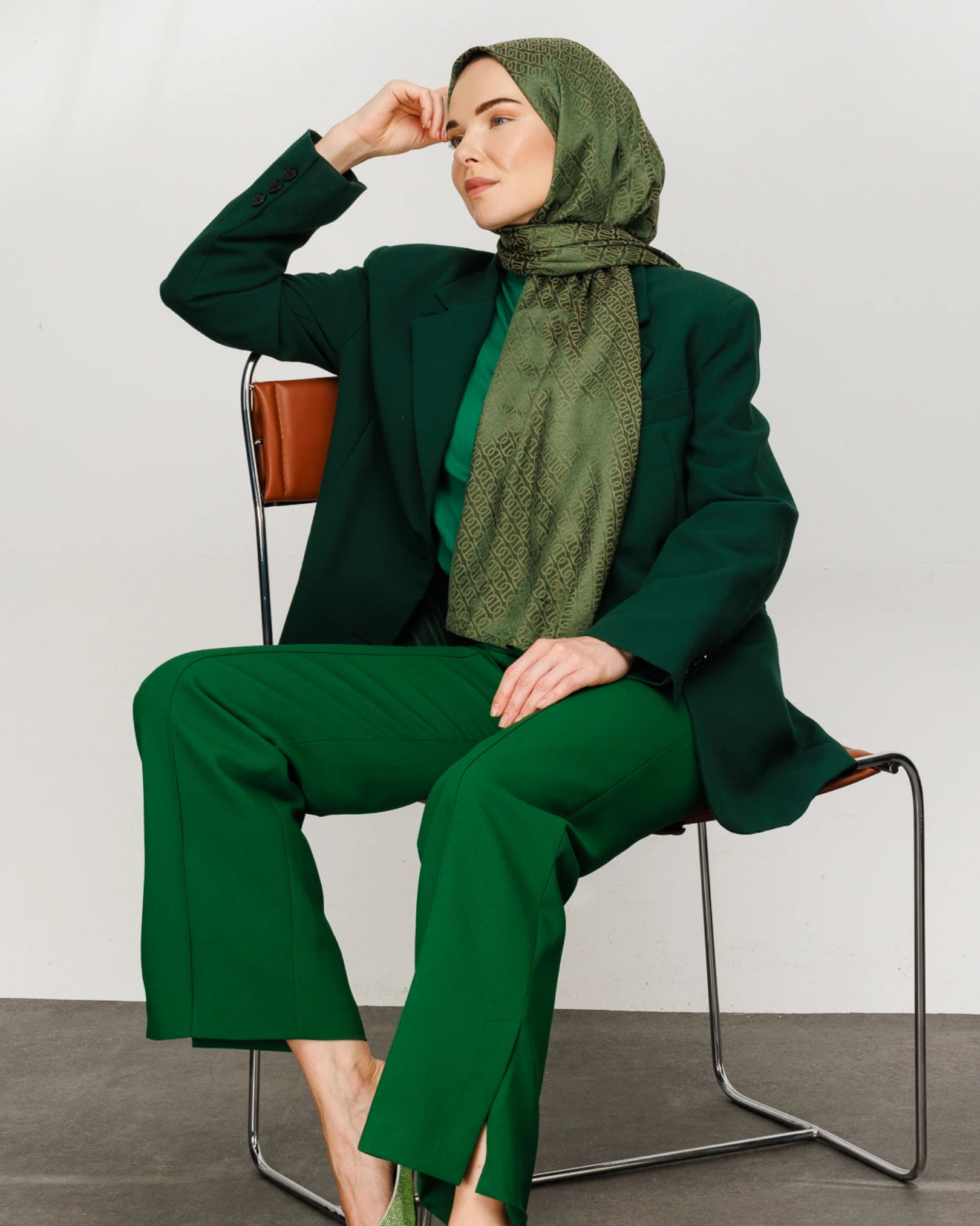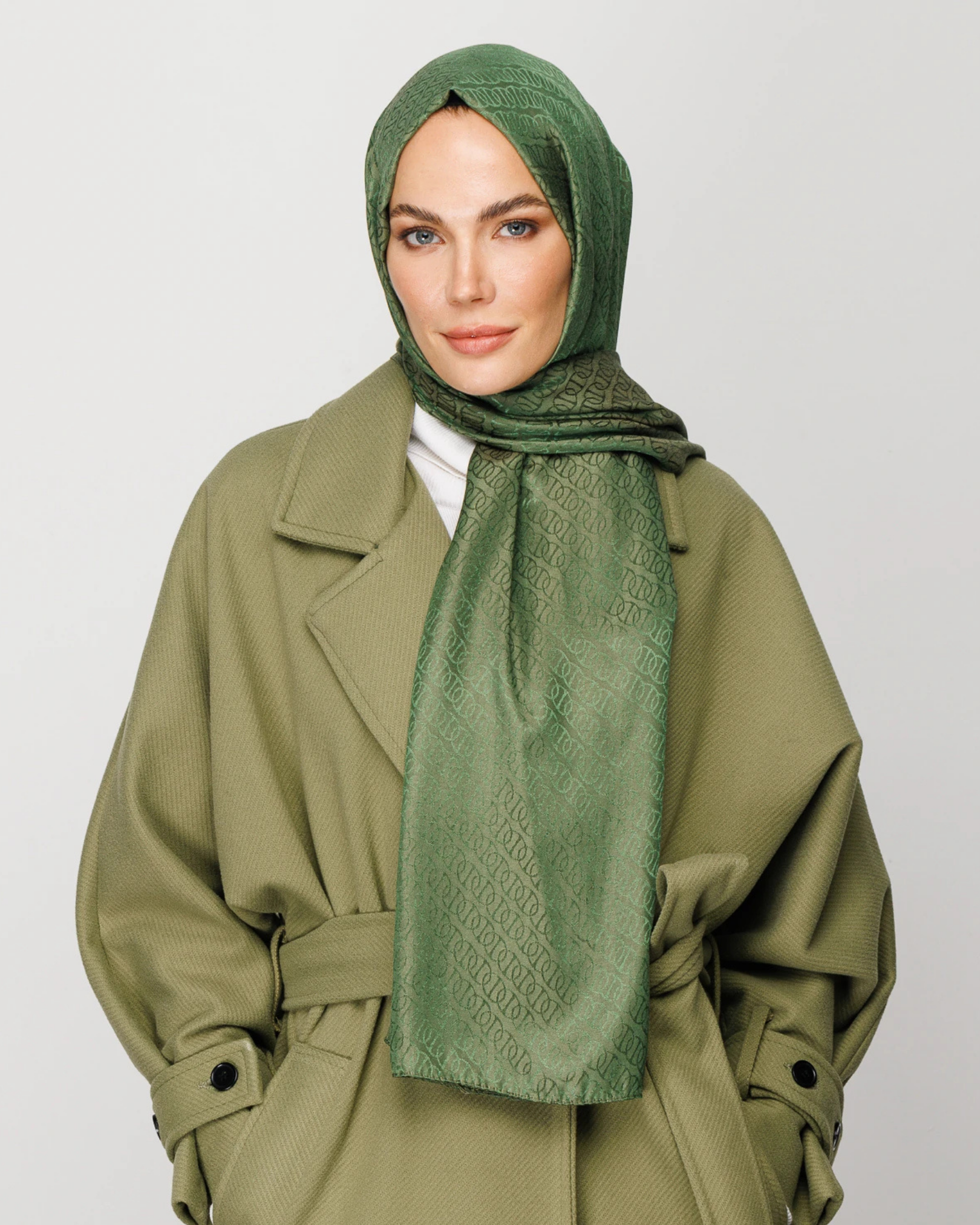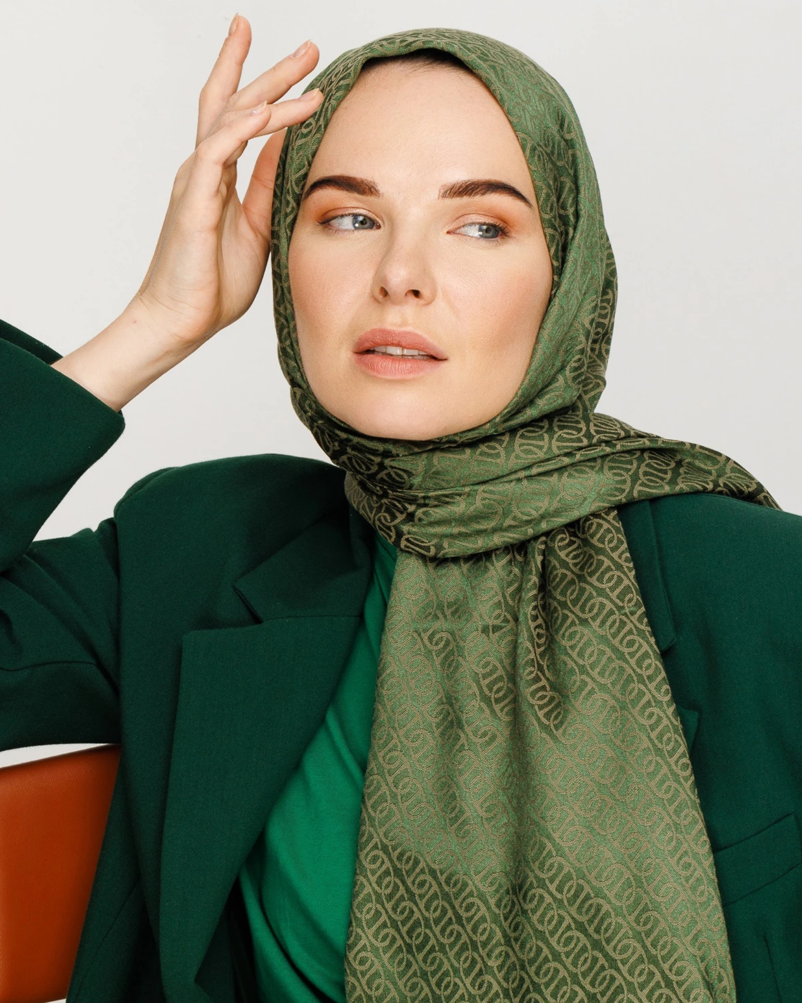 Asker Yeşili Forever Desen Parlak Jakar Şal (JKRMNC0018)