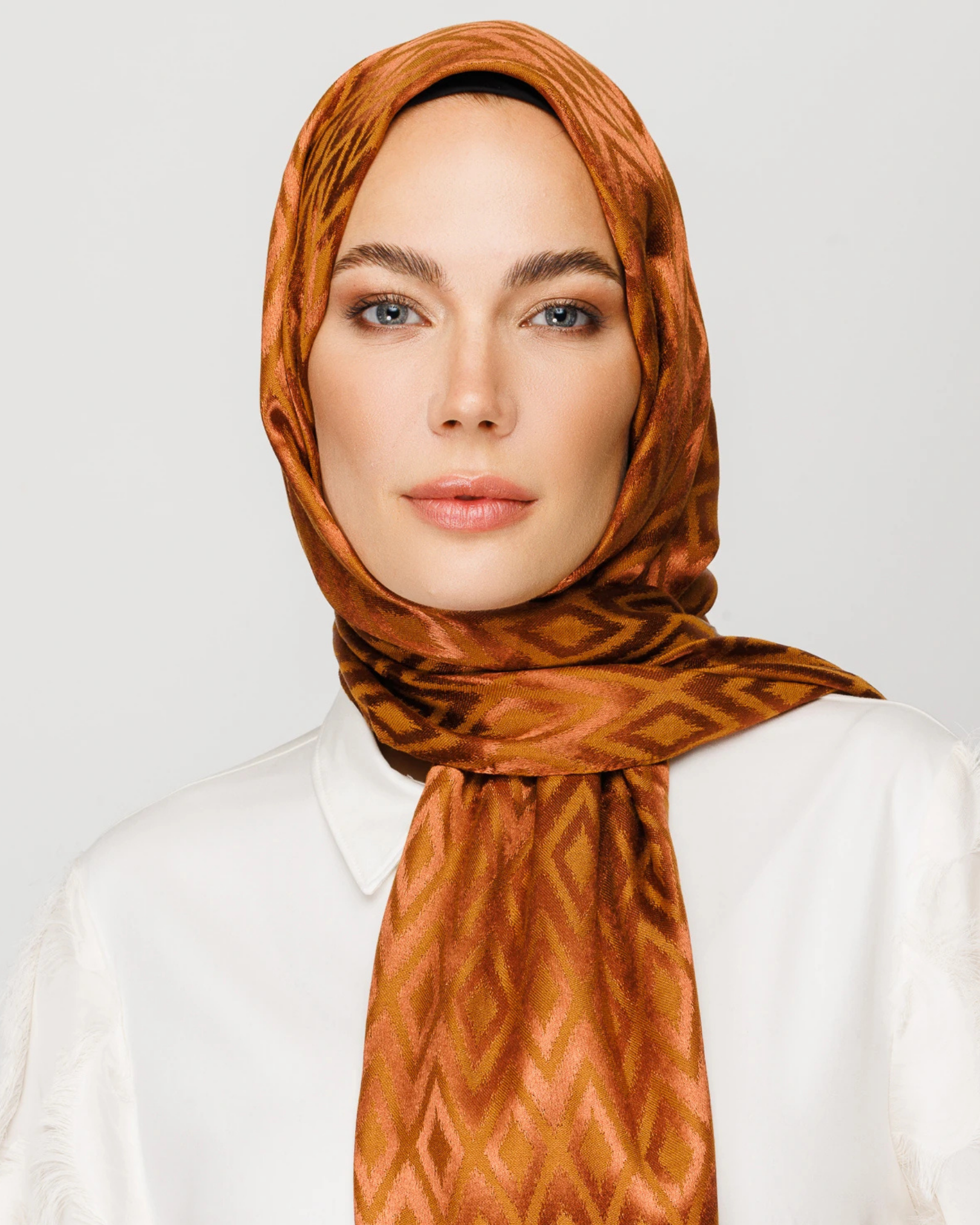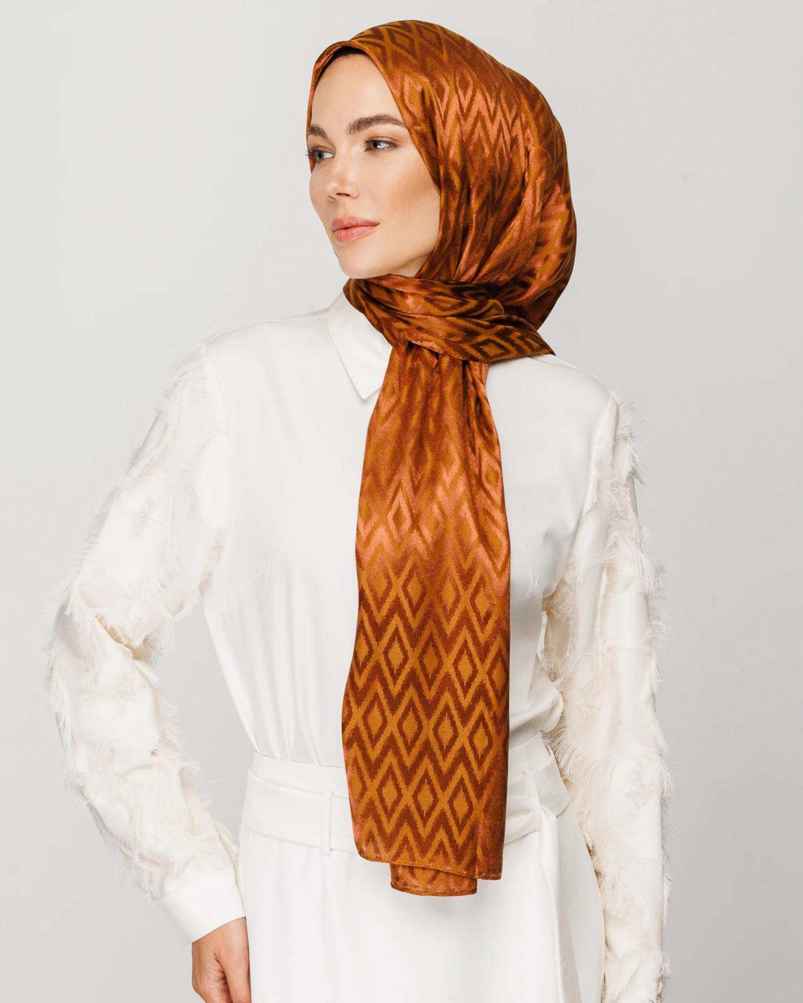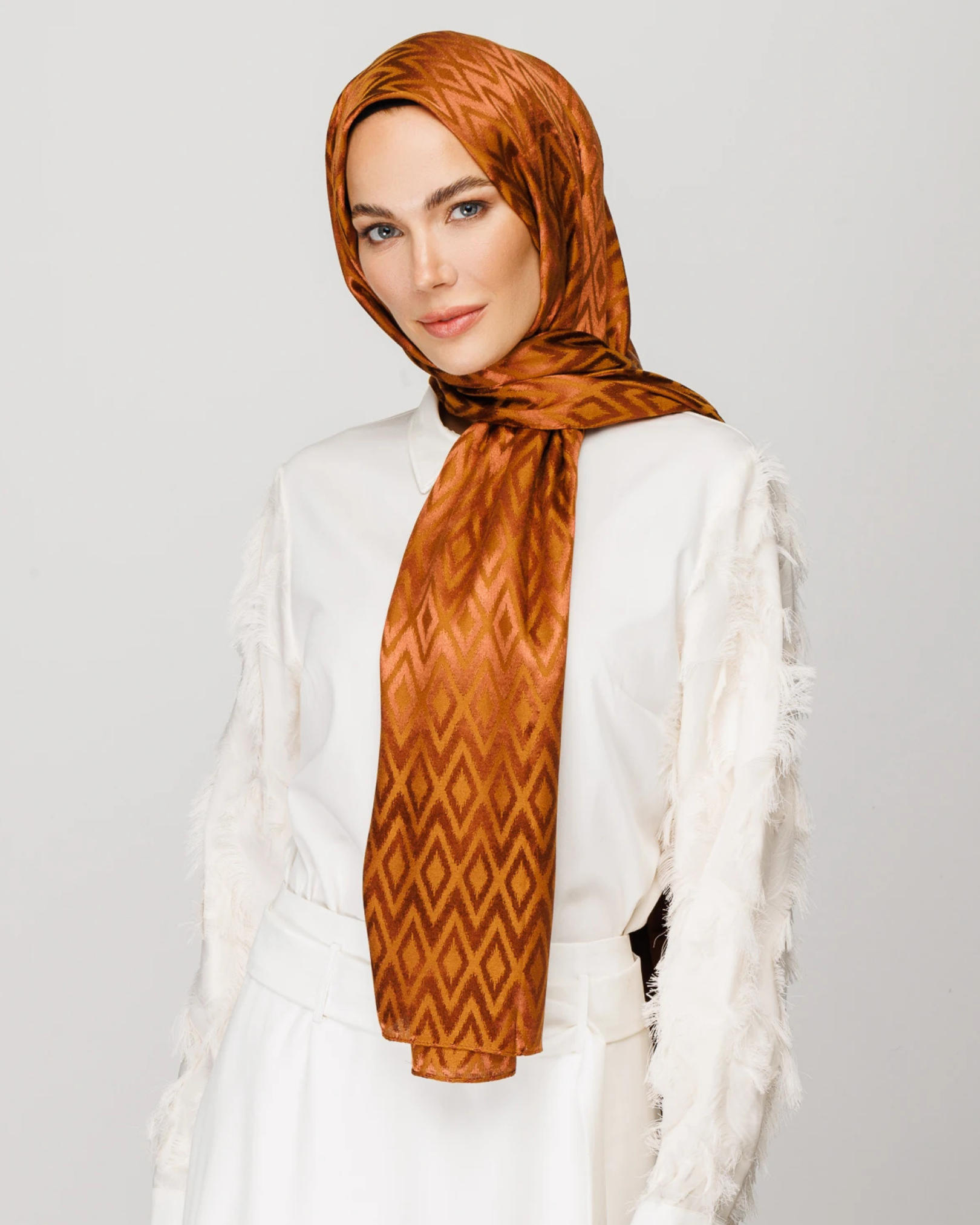 Bakır Karo Desen Parlak Jakar Şal (JKRMNC0015)