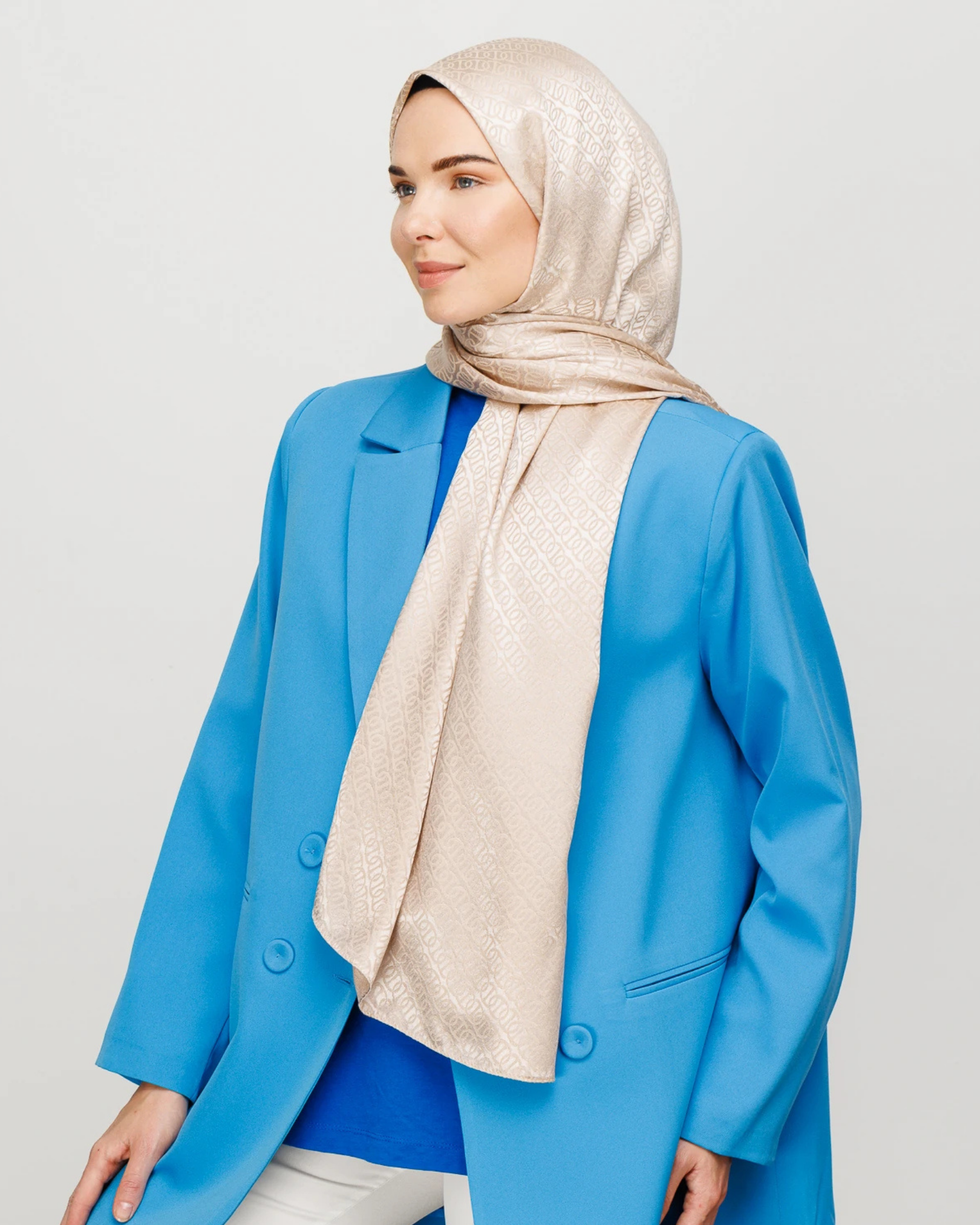 Bej Forever Desen Parlak Jakar Şal (JKRMNC0018)