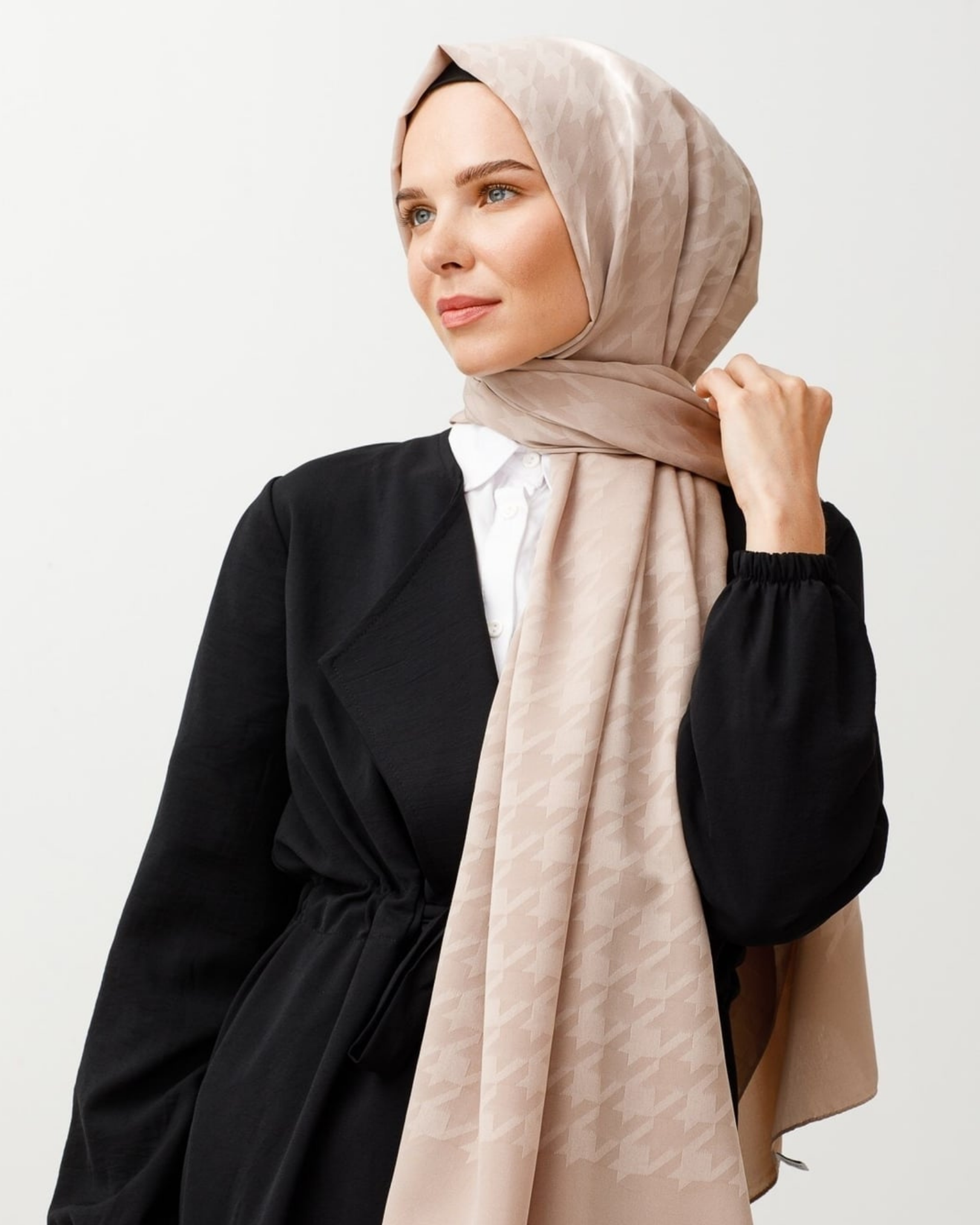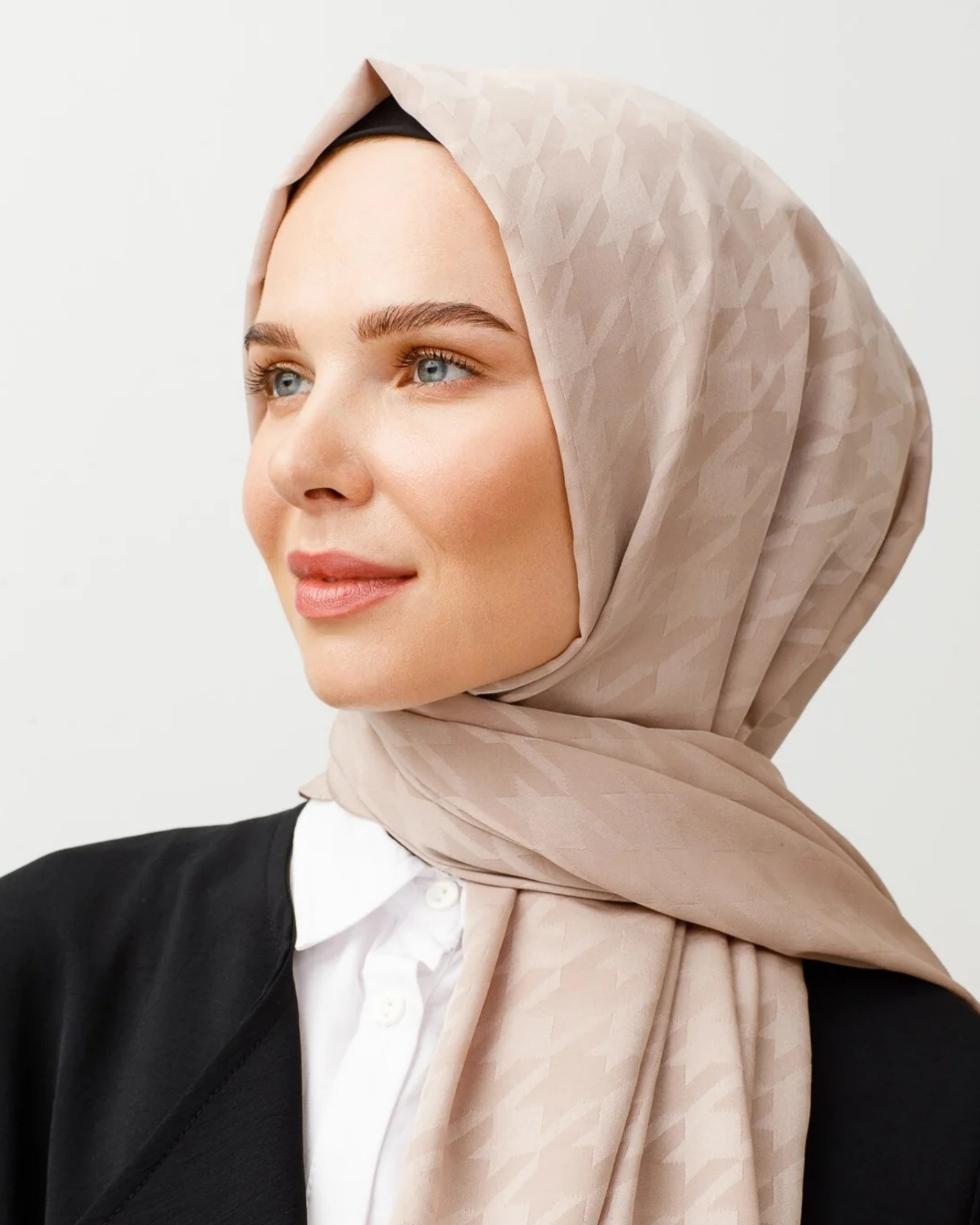 Bej Kazayağı Desen İpeksi Jakar Şal (JKRMNC0005)