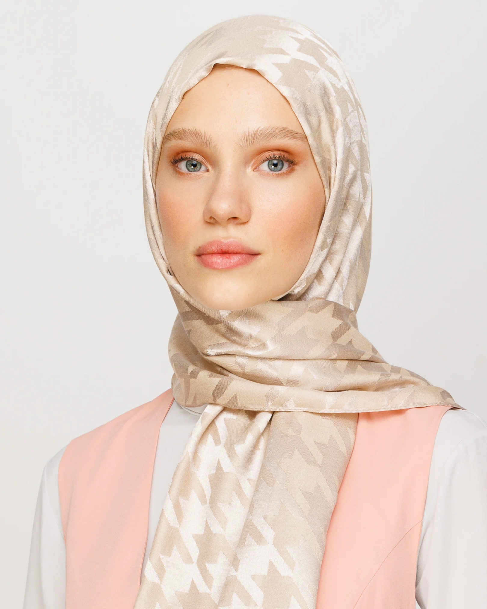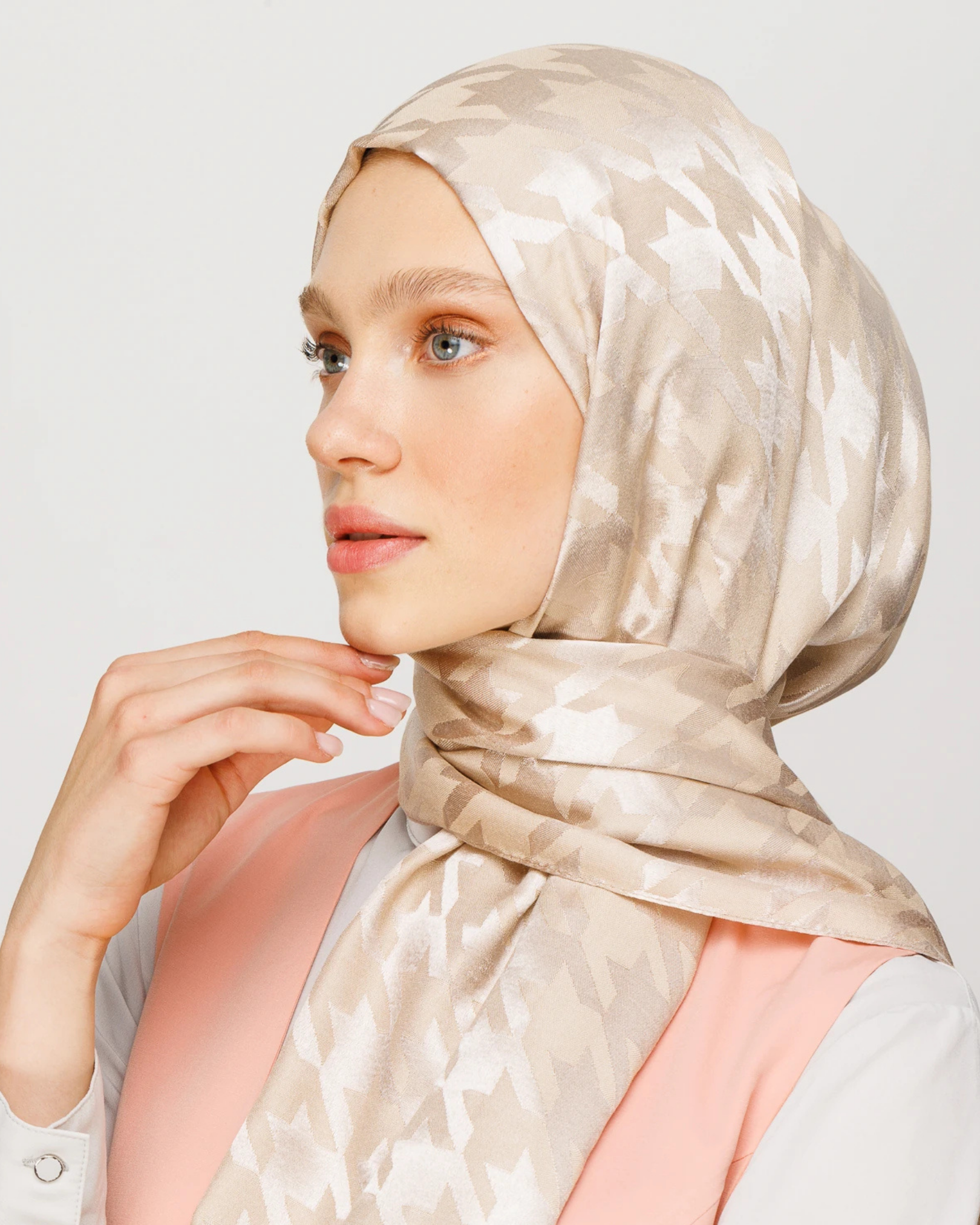 Bej Kazayağı Desen Parlak Jakar Şal (JKRMNC0017)
