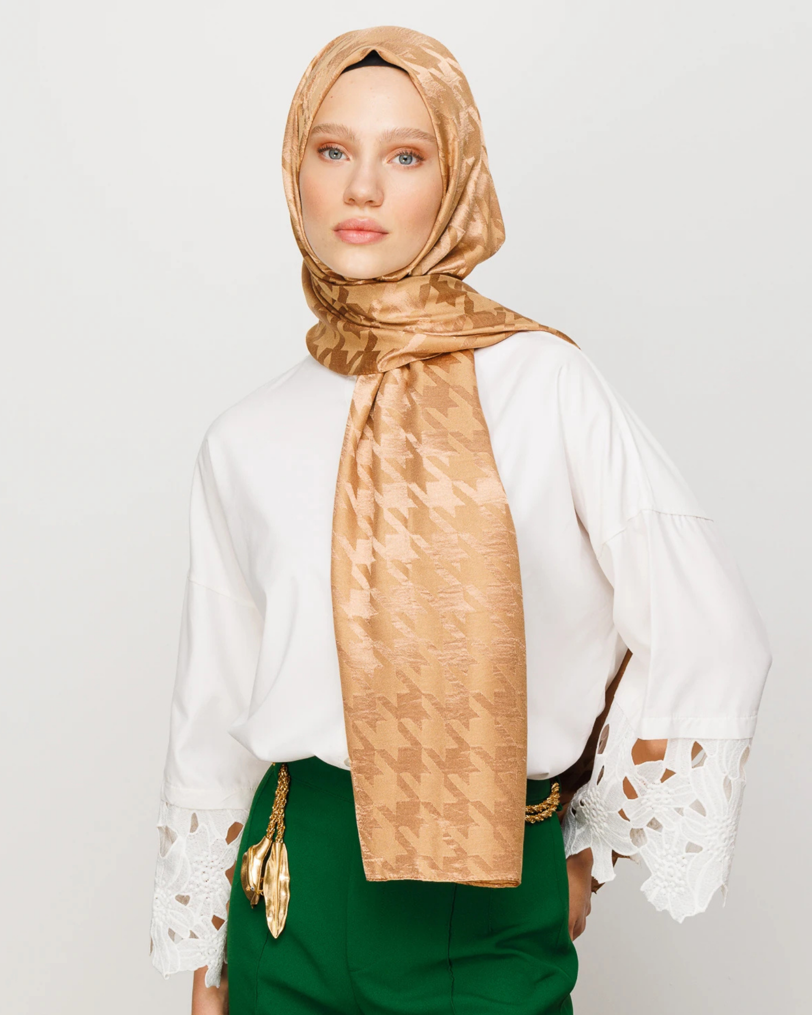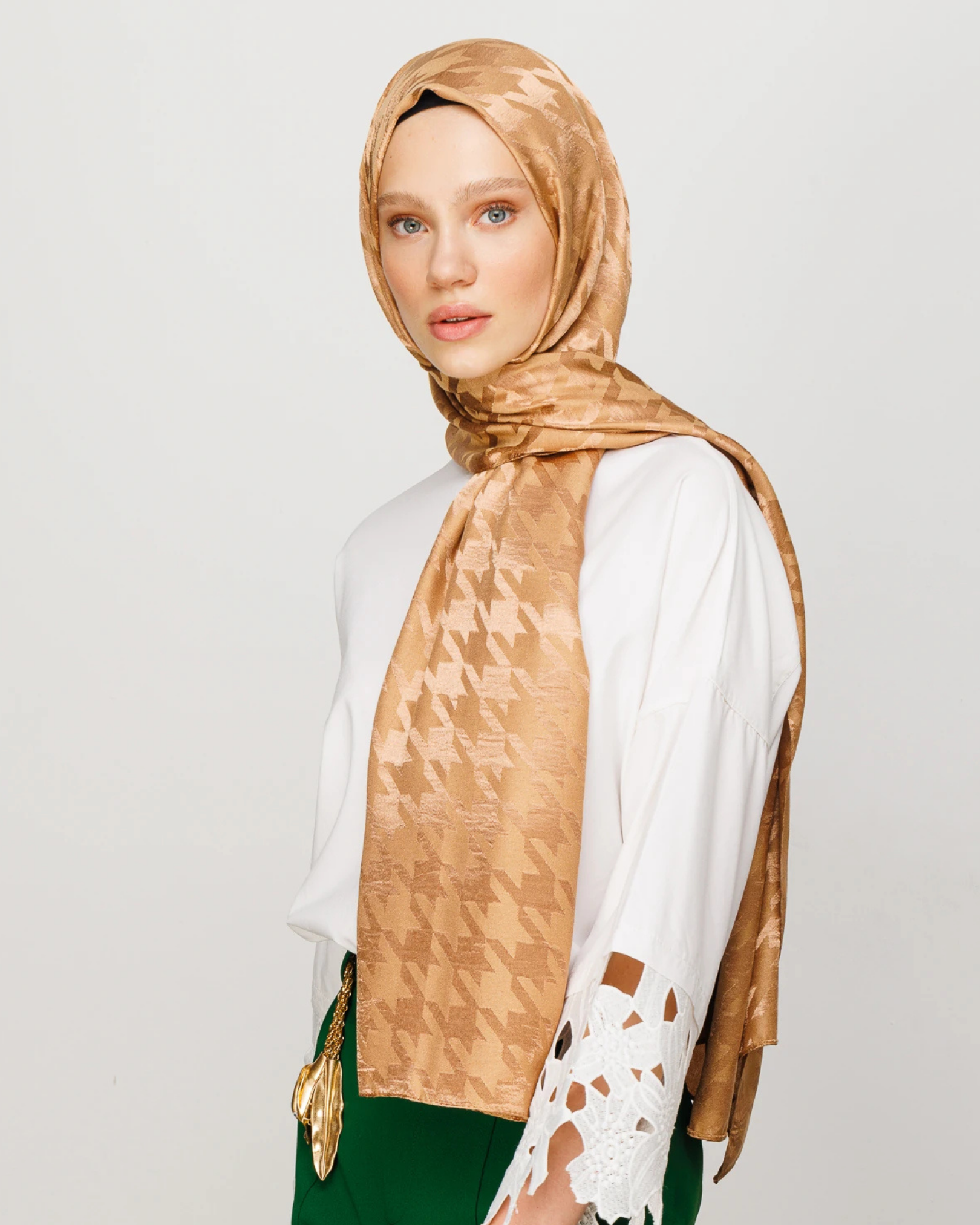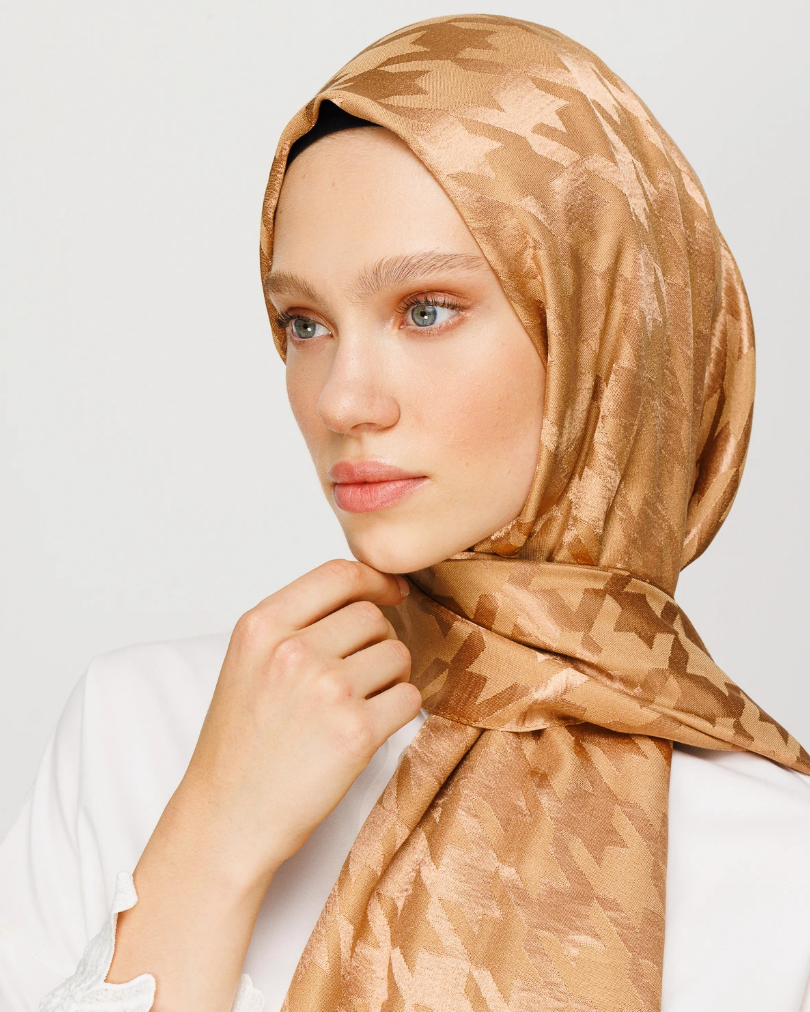 Bisküvi Kazayağı Desen Parlak Jakar Şal (JKRMNC0017)