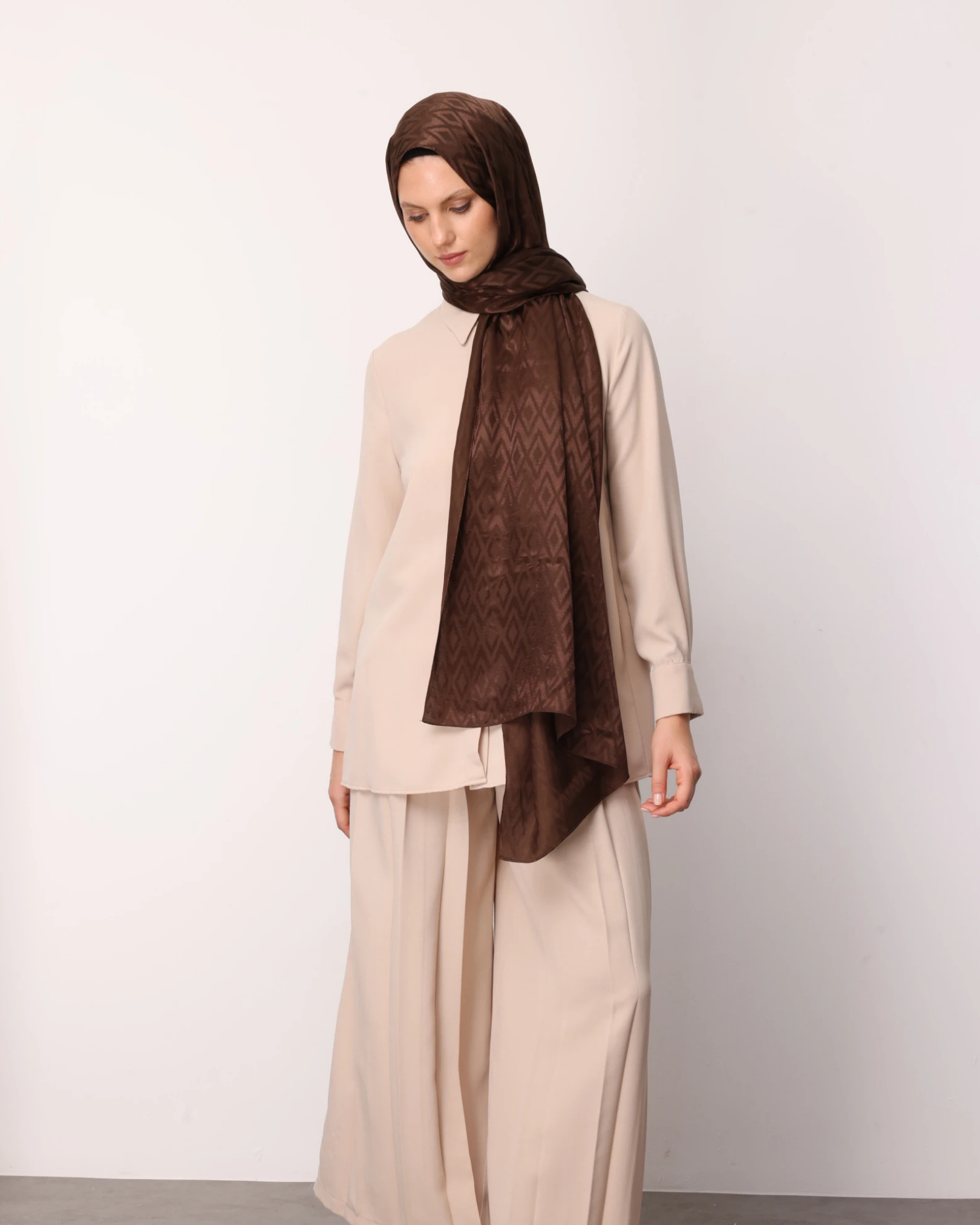 Zarif parlak yüzeyi ve kendinden desenli dokusuyla öne çıkan Parlak Jakar Şal, ışıltılı görünümüyle özel günlerde ve davetlerde şıklığınızı tamamlar. Yumuşak, dökümlü yapısı sayesinde hem konforlu hem de göz alıcı bir kullanım sunar.