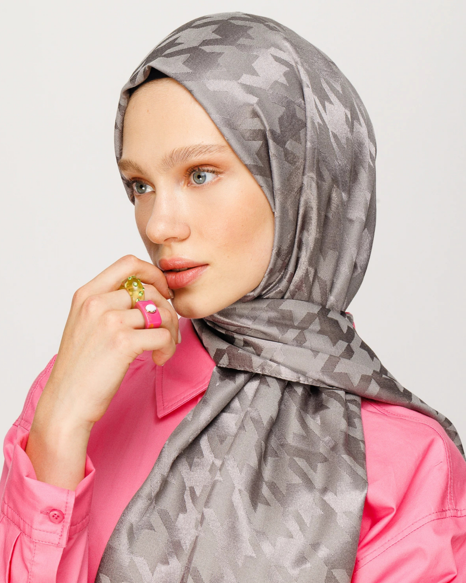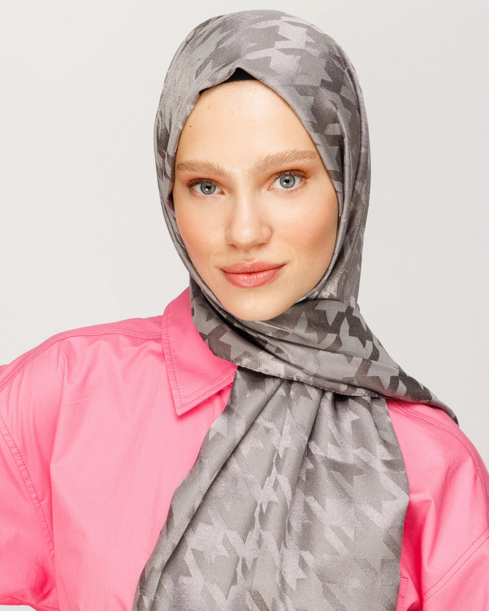 Duman Kazayağı Desen Parlak Jakar Şal (JKRMNC0017)