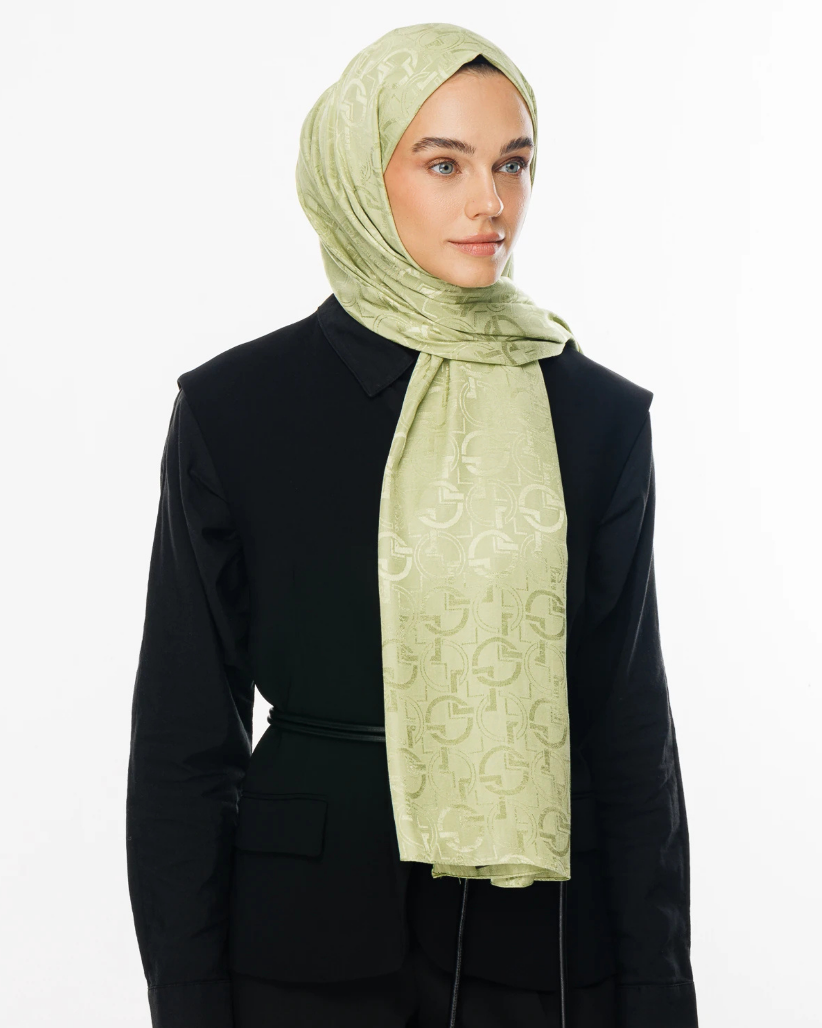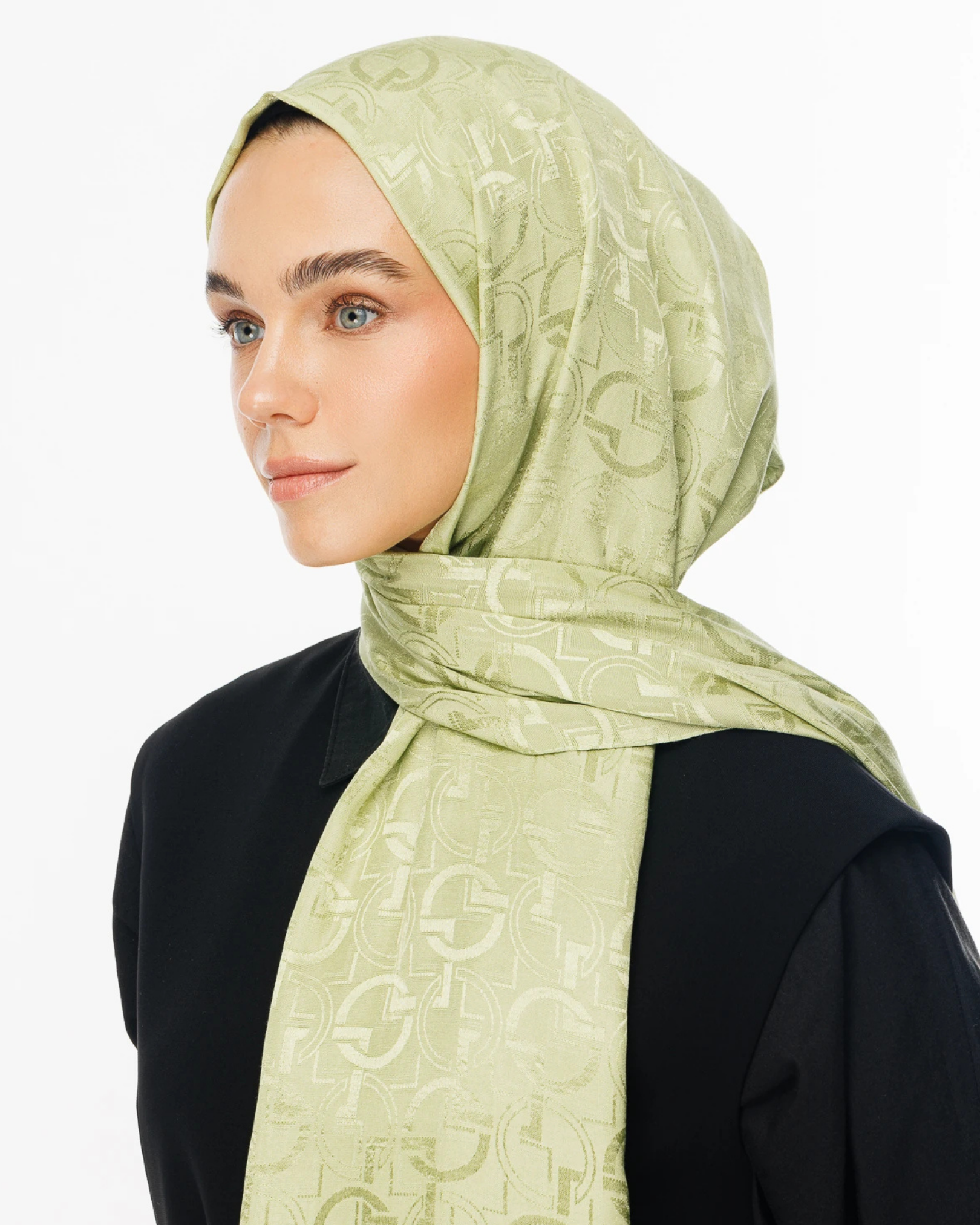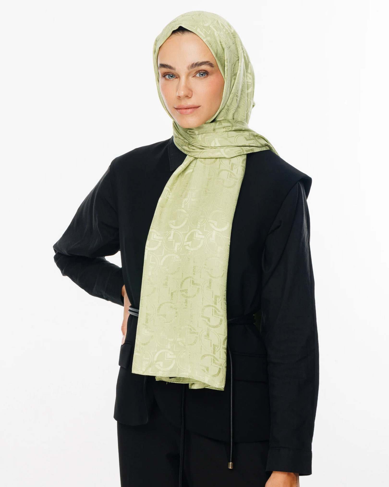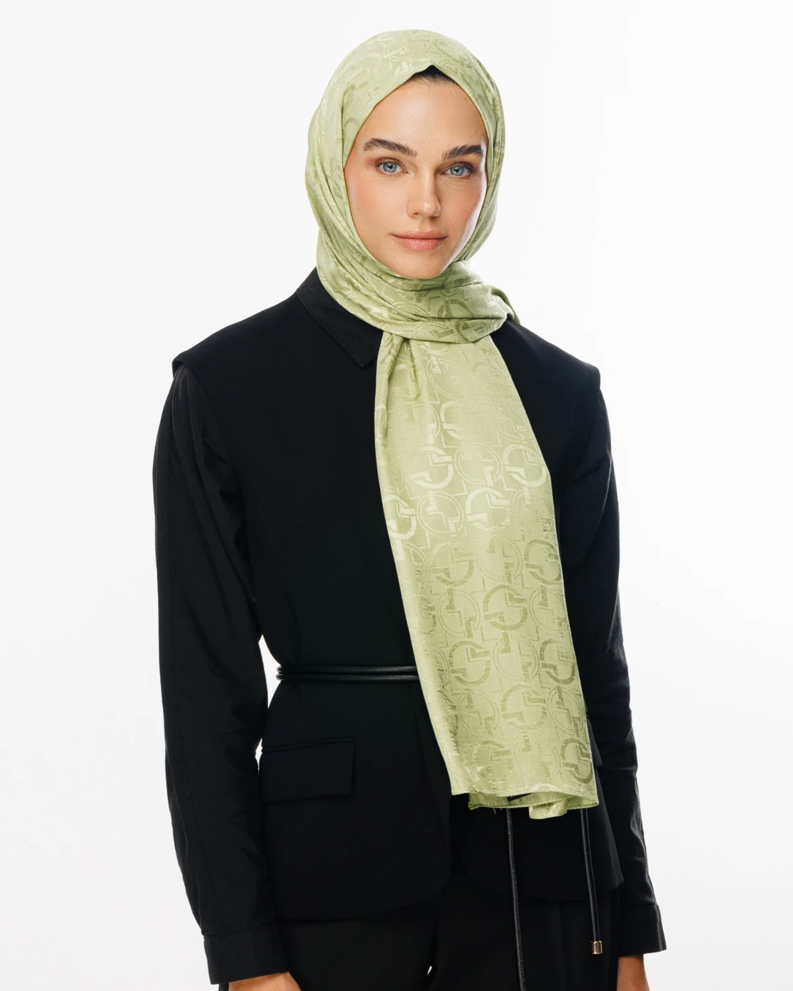 Fıstık Yeşili Longar Desen Parlak Jakar Şal (JKRMNC0016)