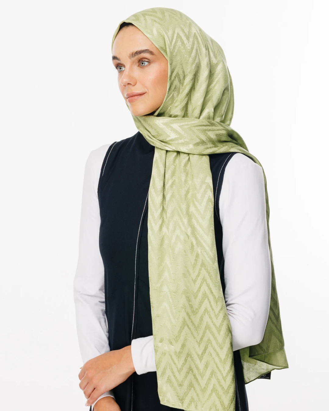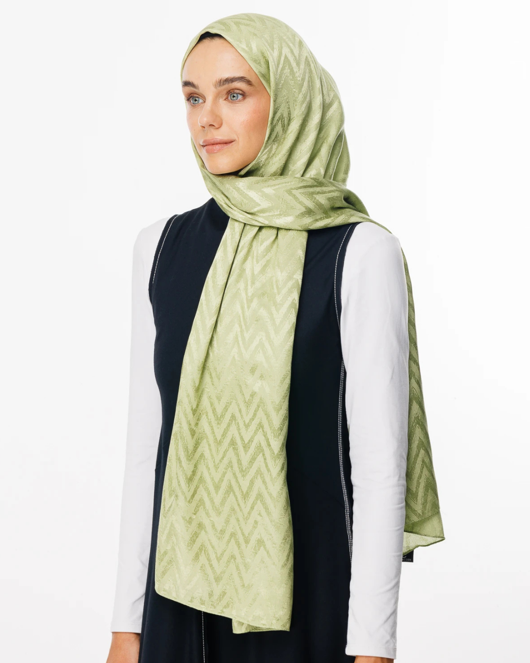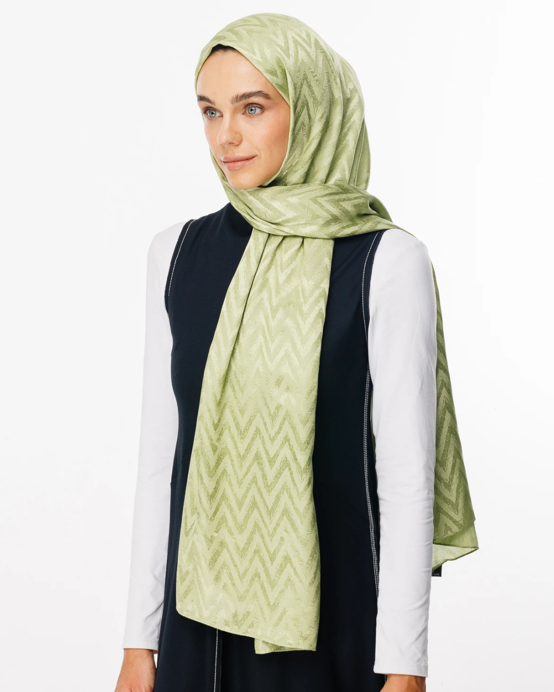 Fıstık Yeşili Zikzak Desen Parlak Jakar Şal (JKRMNC0019)