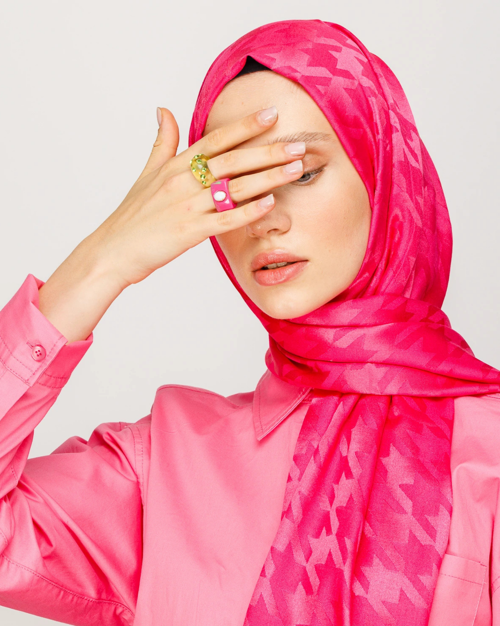 Fuşya Kazayağı Desen Parlak Jakar Şal (JKRMNC0017)