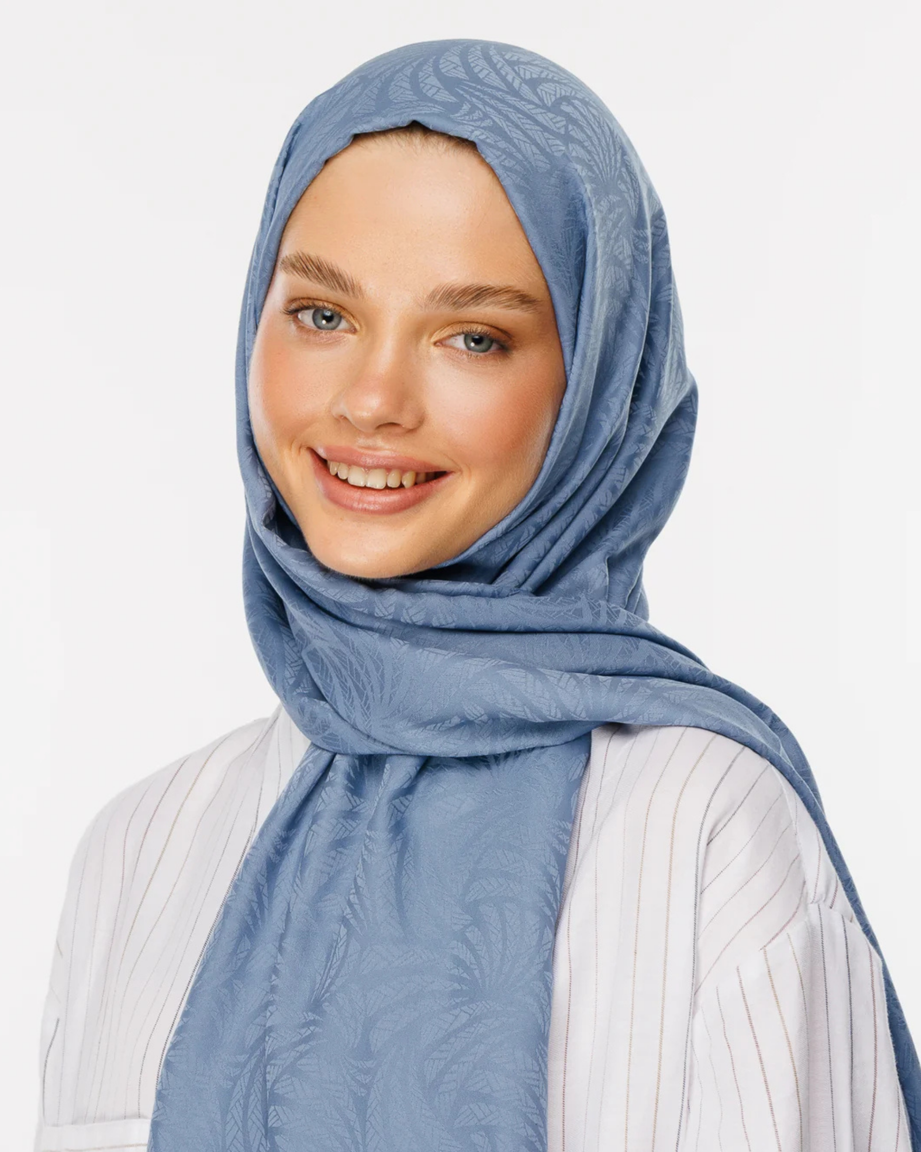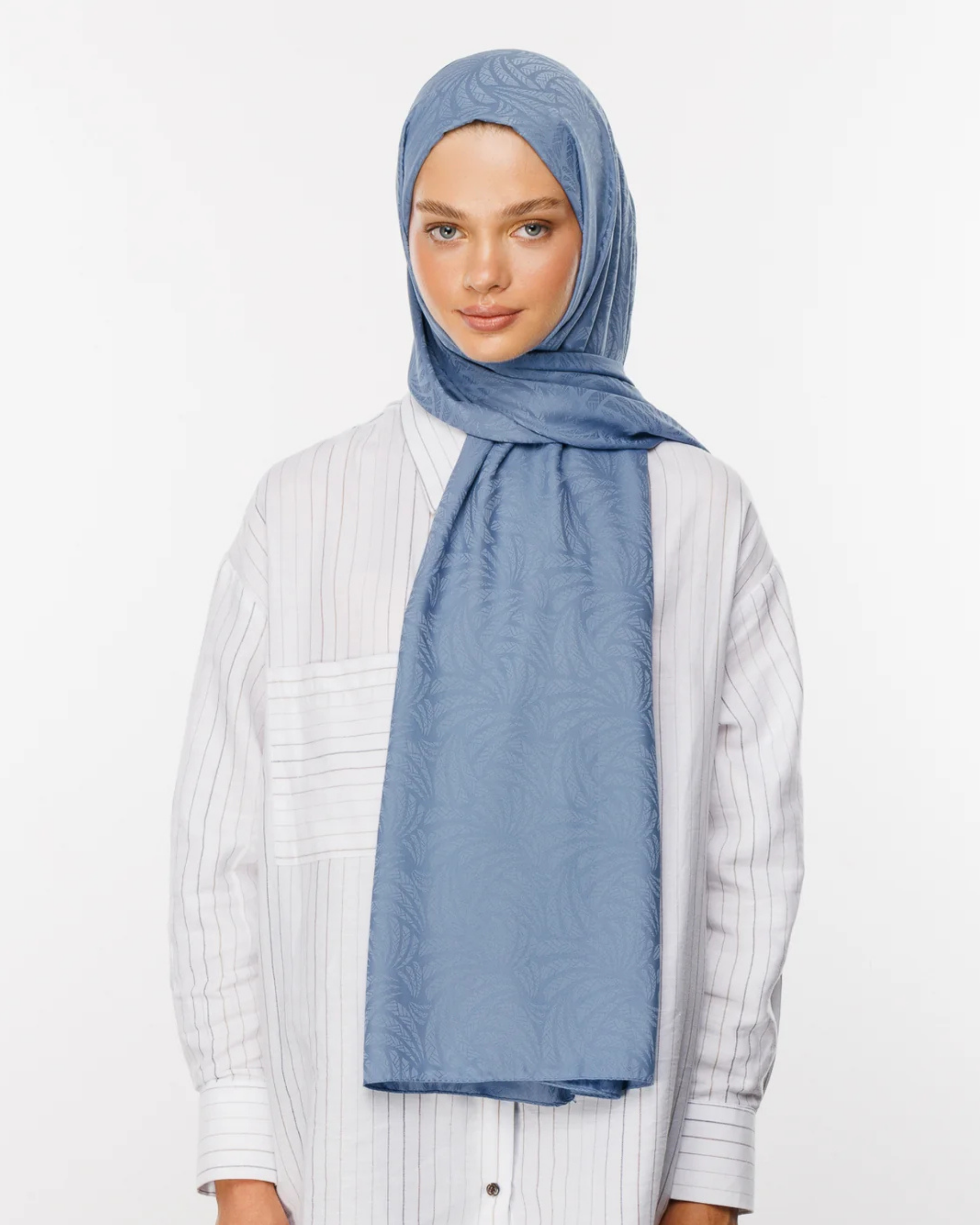Gök Mavisi Artemis Desen İpeksi Jakar Şal (JKRMNC0022)