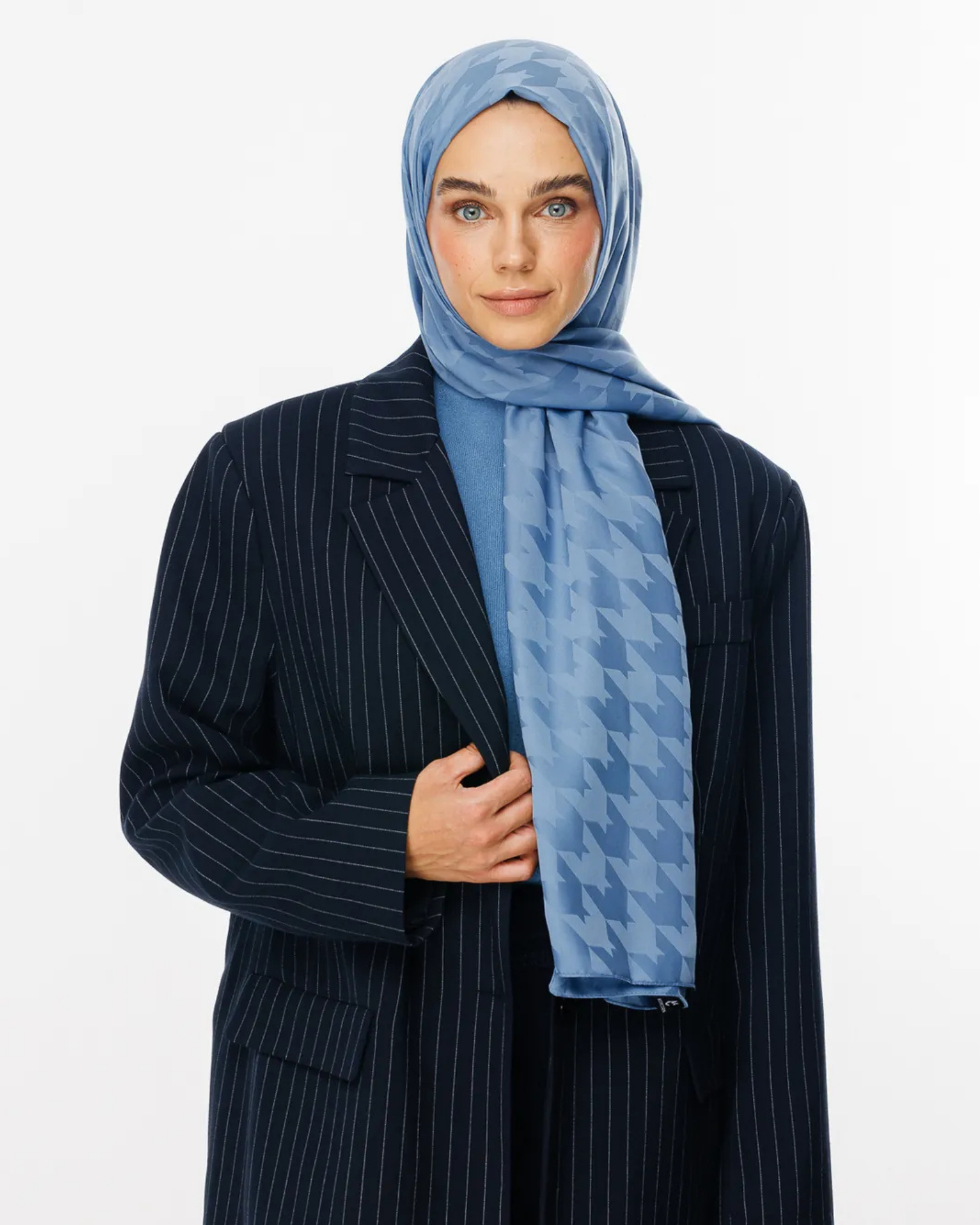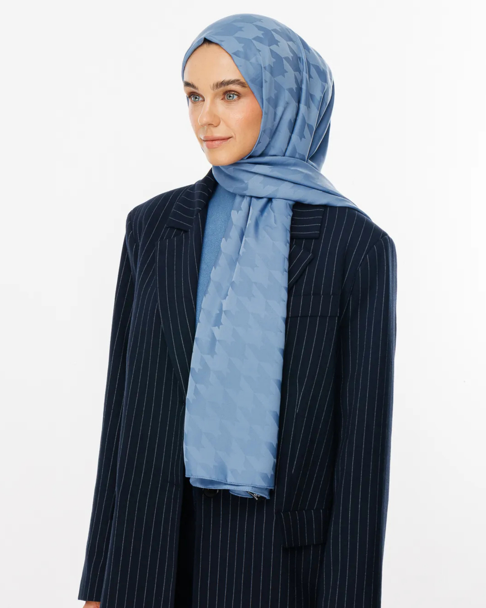 Gök Mavisi Kazayağı Desen İpeksi Jakar Şal (JKRMNC0005)