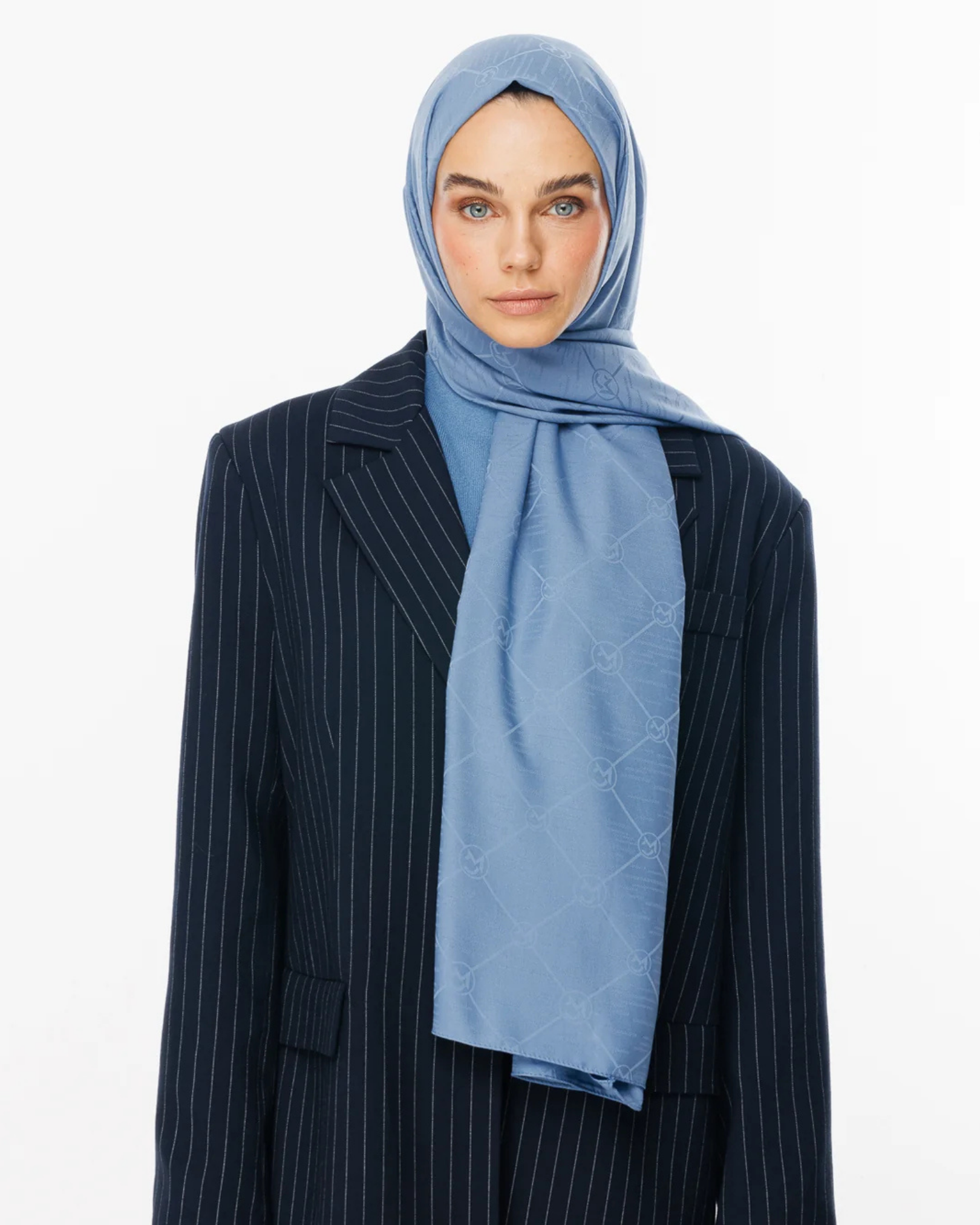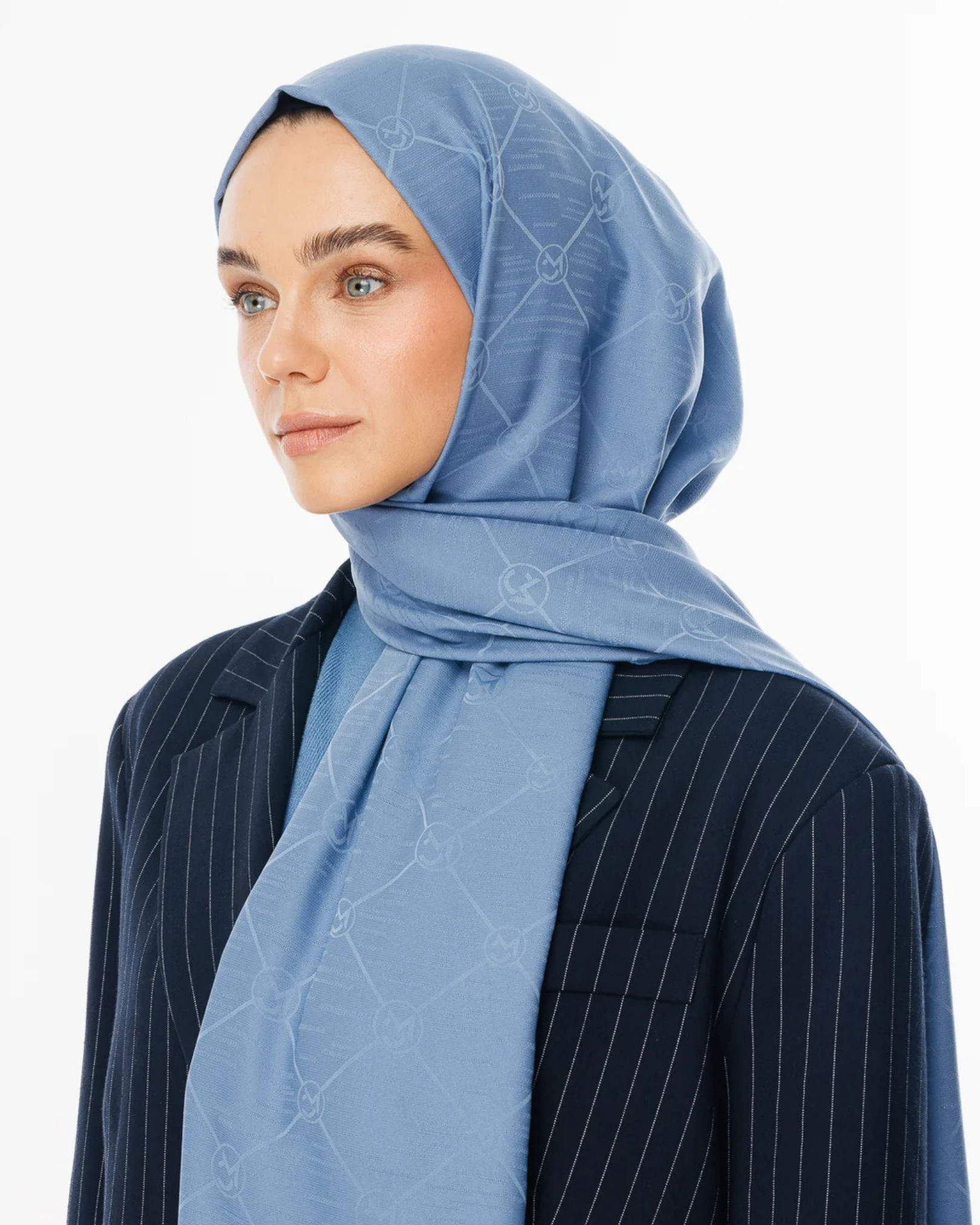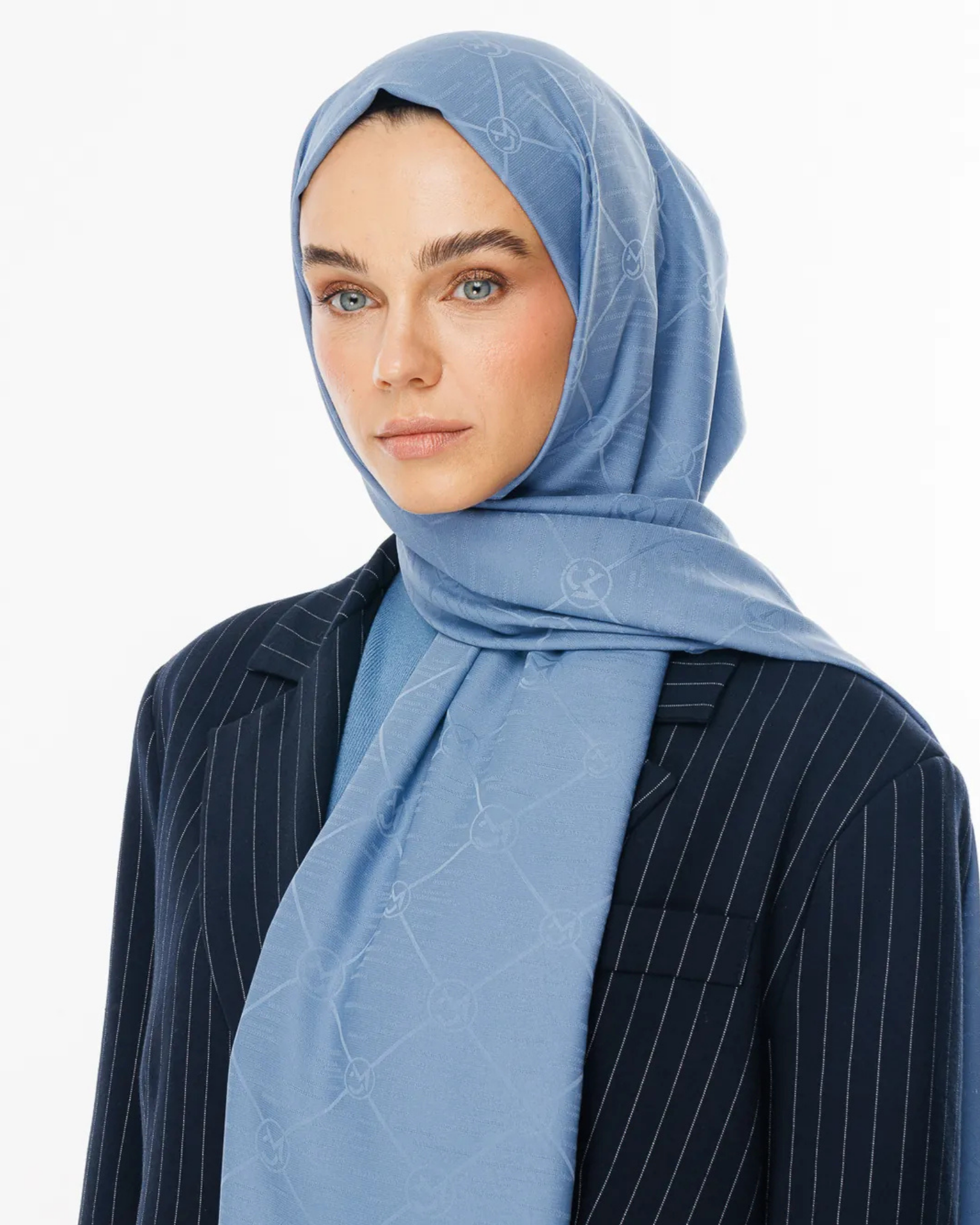 Gök Mavisi Moon Is Desen Jakar Şal (JKRMNC0026)