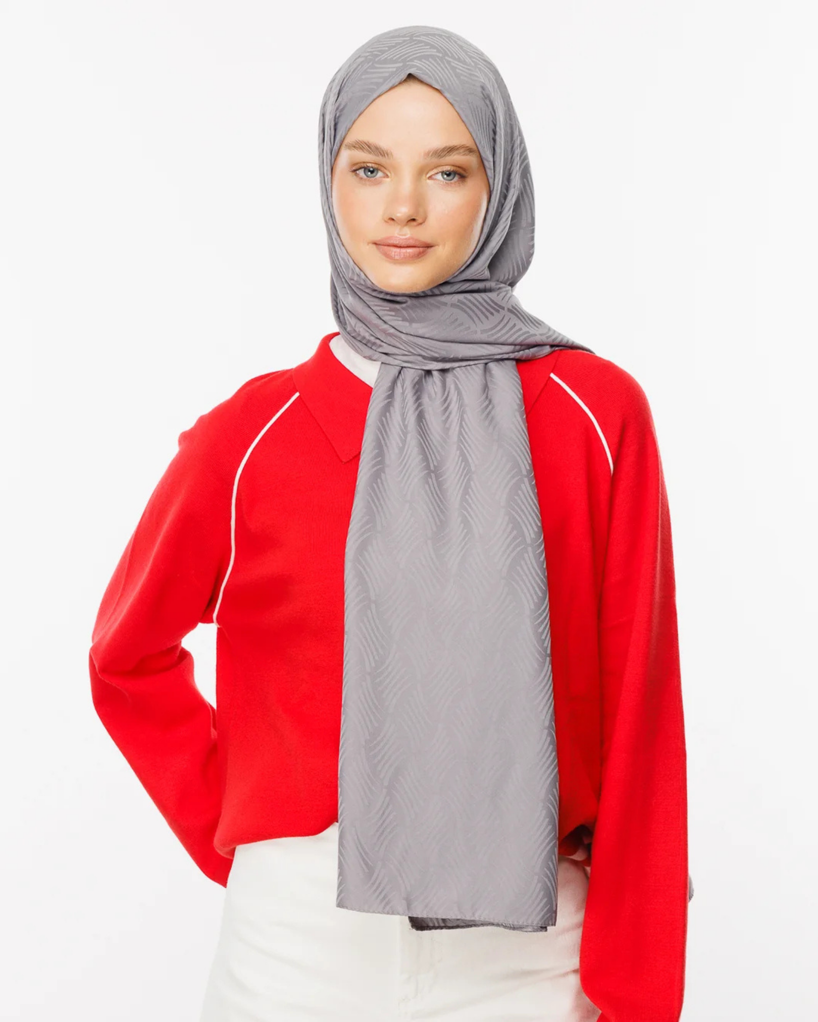 Gri Aura Desen İpeksi Jakar Şal (JKRMNC0023)