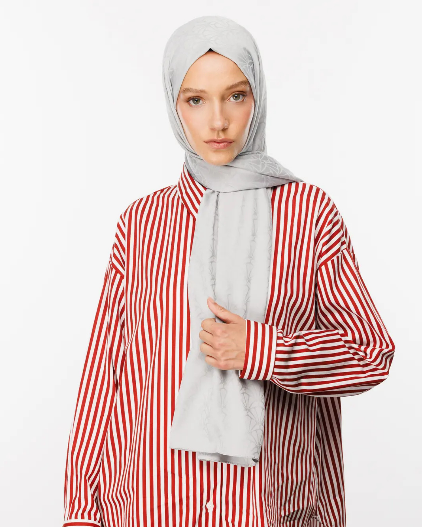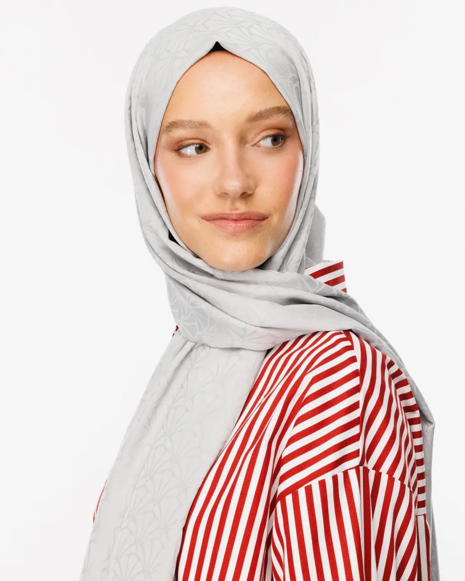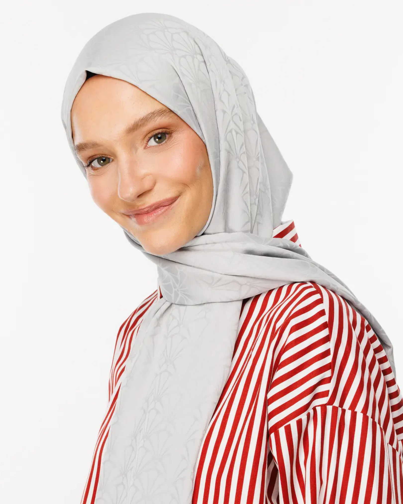 Gümüş Lotus Desen İpeksi Jakar Şal (JKRMNC0024)