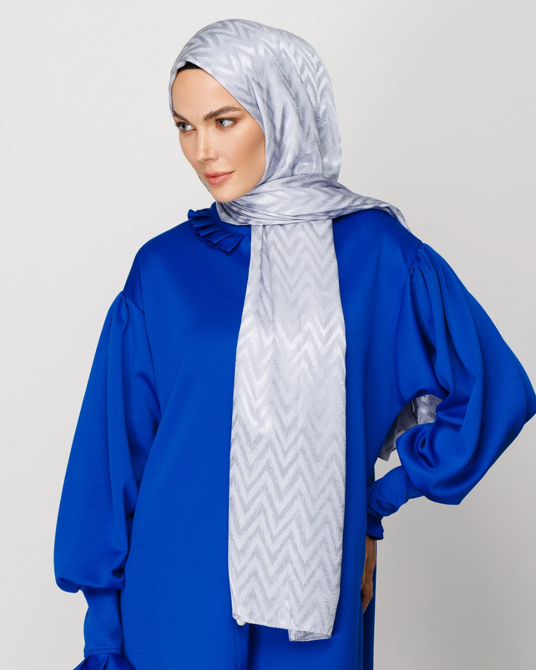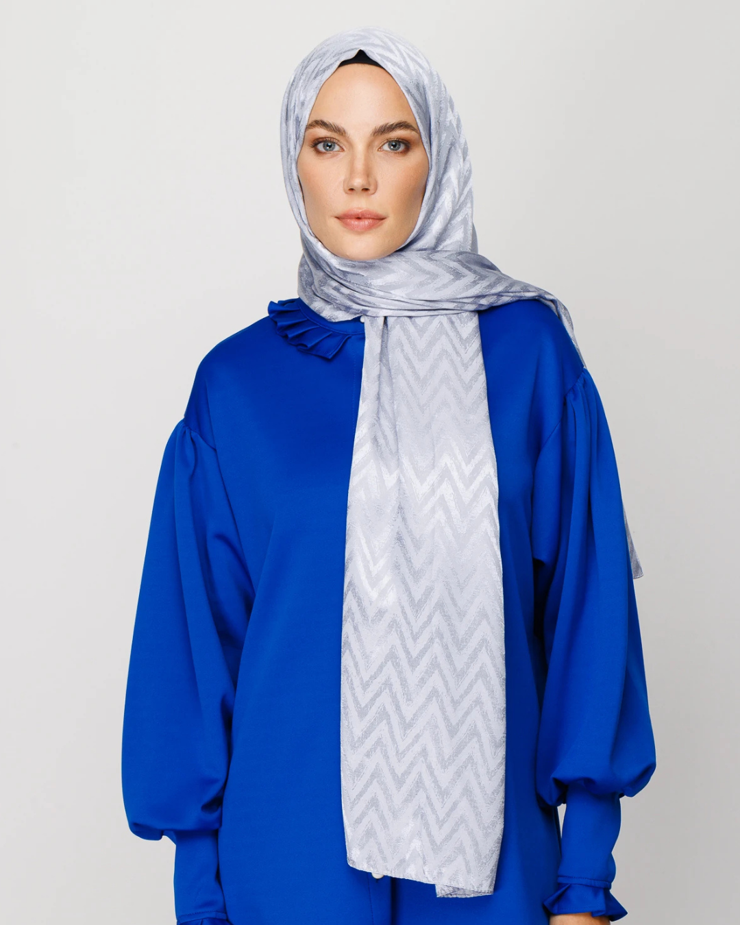 Gümüş Zikzak Desen Parlak Jakar Şal (JKRMNC0019)