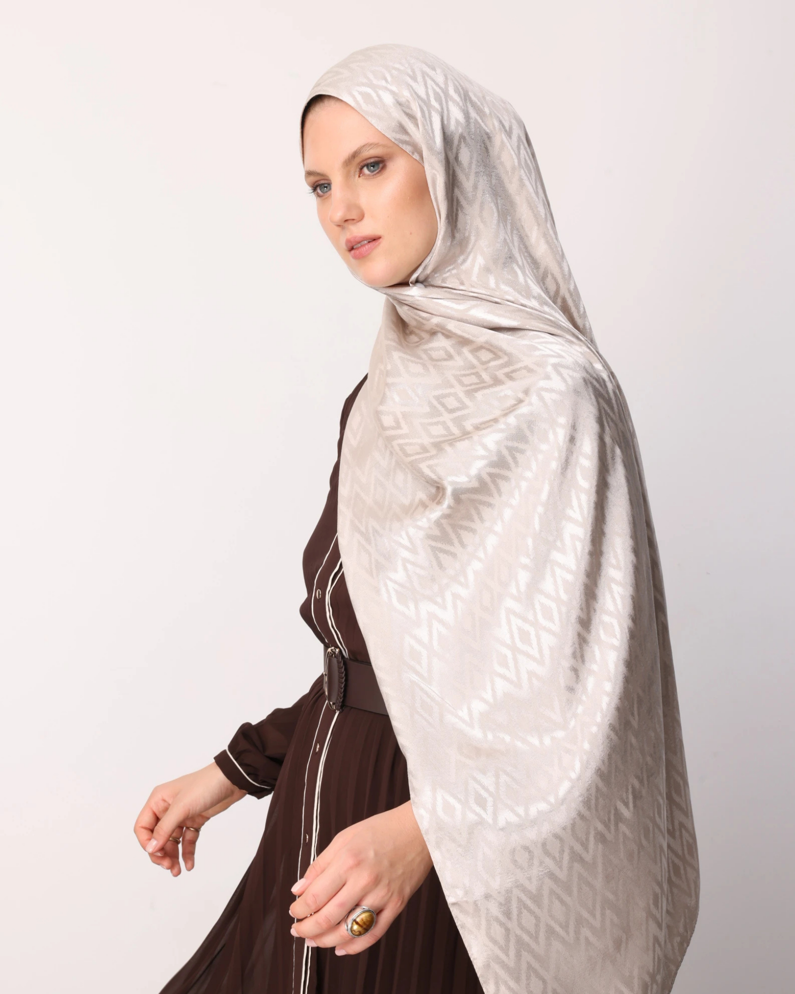 Zarif parlak yüzeyi ve kendinden desenli dokusuyla öne çıkan Parlak Jakar Şal, ışıltılı görünümüyle özel günlerde ve davetlerde şıklığınızı tamamlar. Yumuşak, dökümlü yapısı sayesinde hem konforlu hem de göz alıcı bir kullanım sunar.