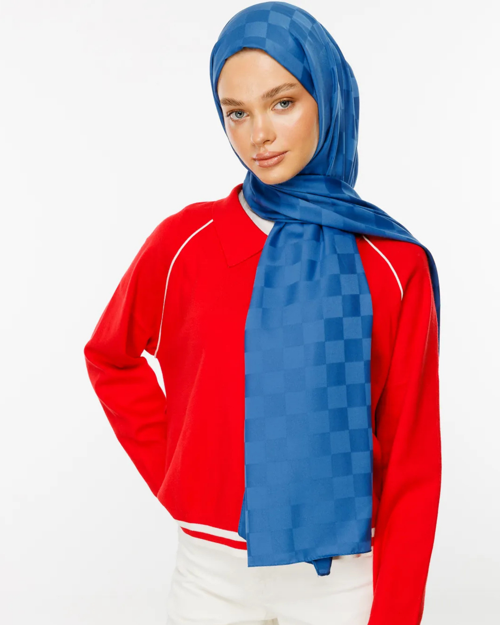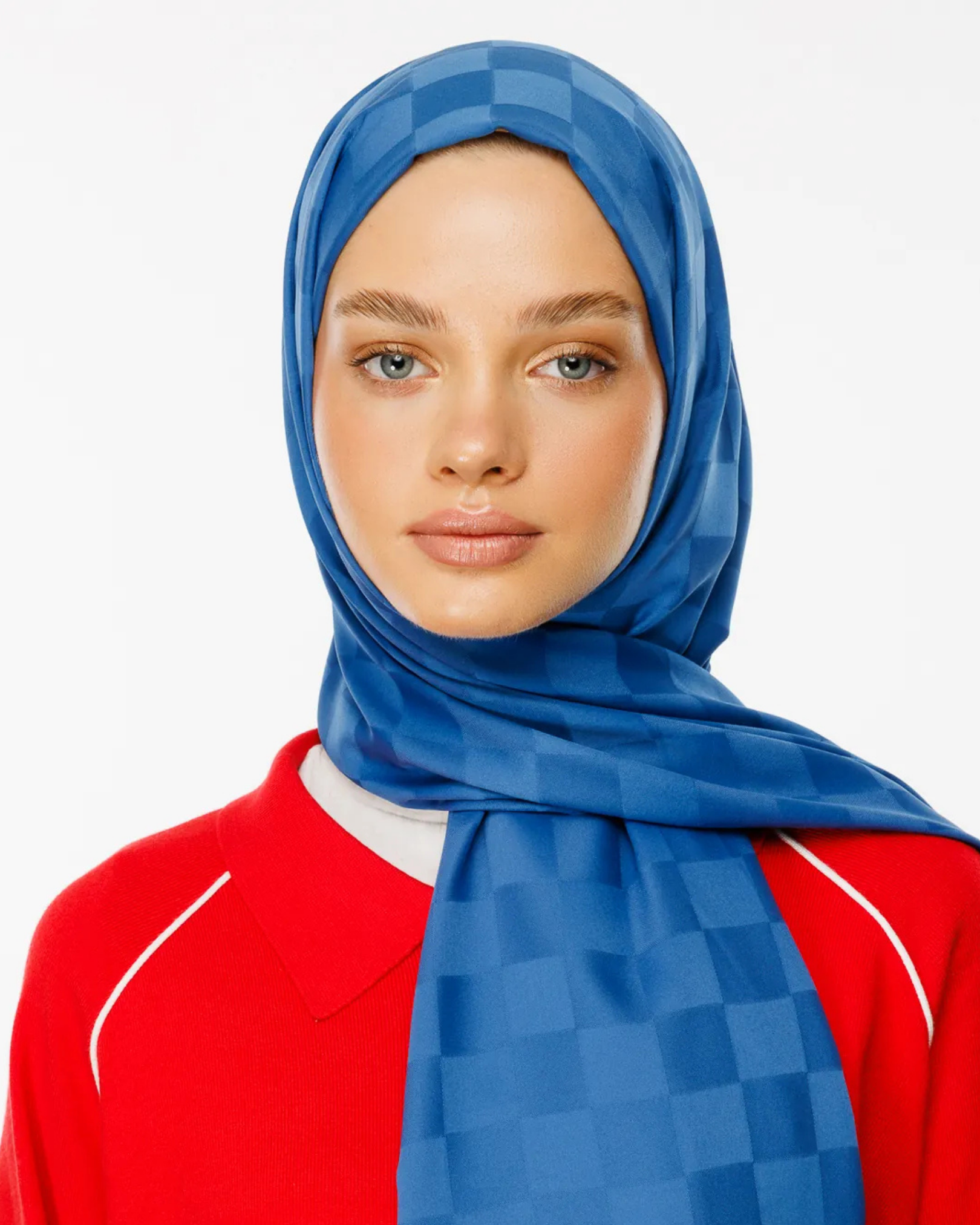 İndigo Dama Desen İpeksi Jakar Şal (JKRMNC0014)