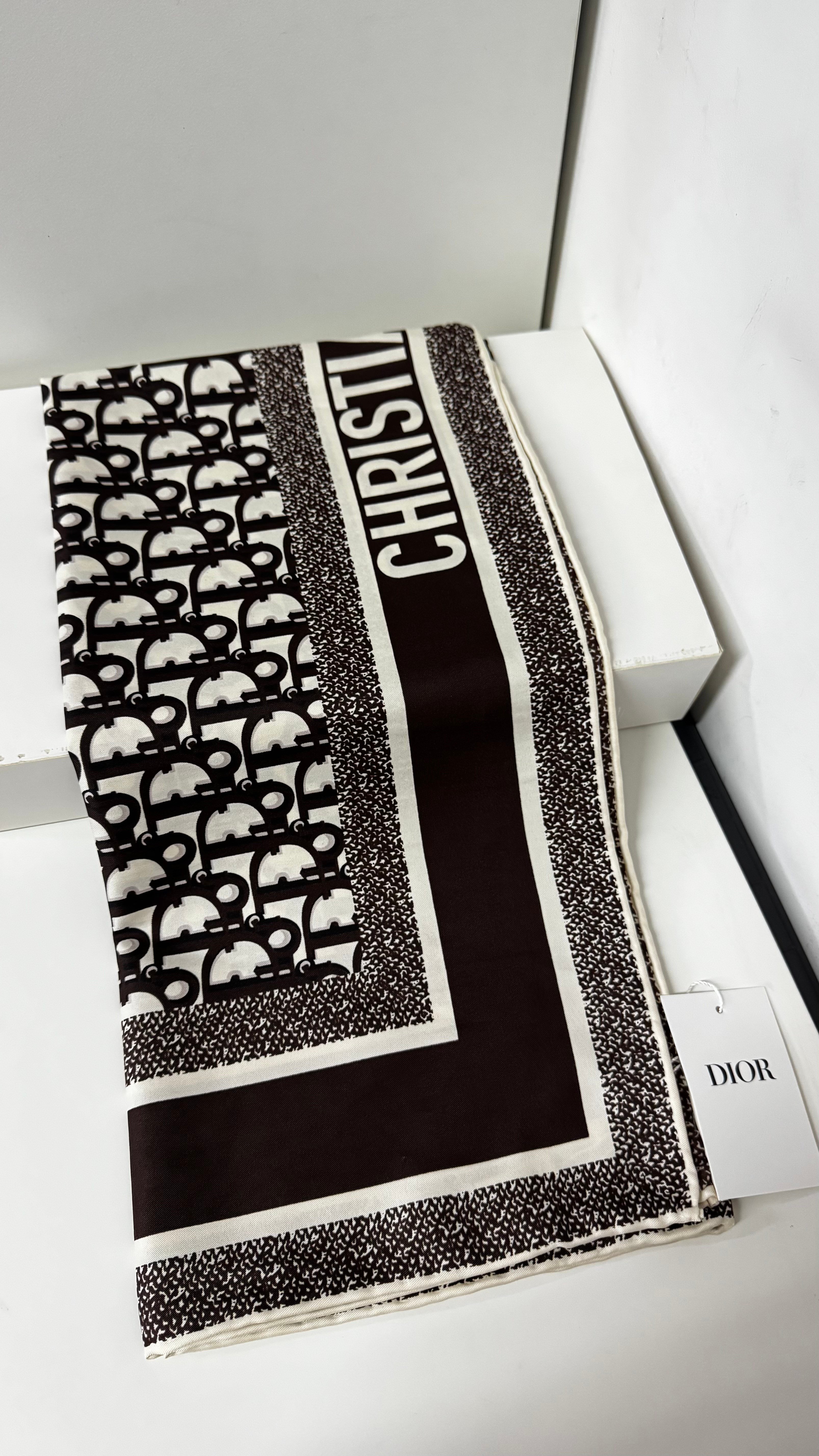 İthal Acı Kahve CD Monogram Desen Twill İpek Eşarp (LUKS-E-Tİ-CDM-05)