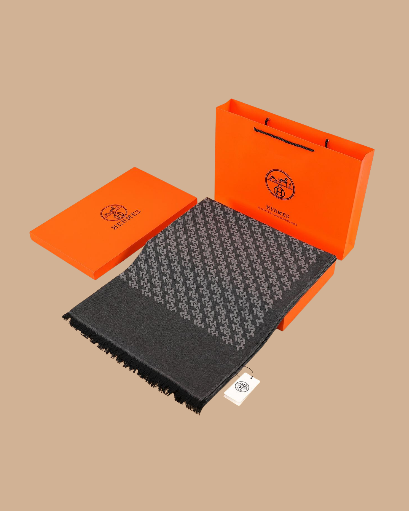 İthal Antrasit H Desen Yün İpek Şal (LMS122)