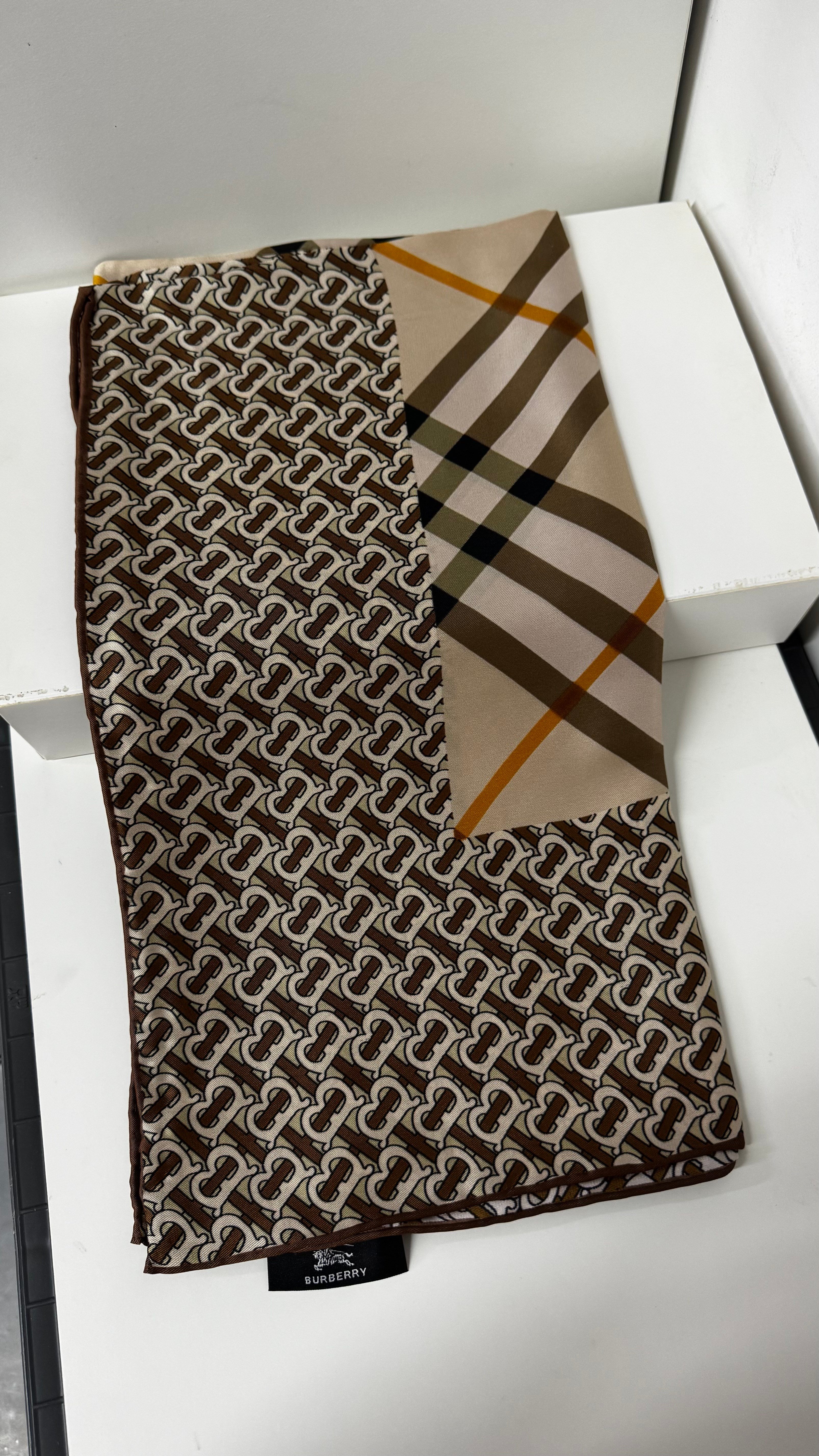 İthal Bej B Classic Desen Twill İpek Eşarp (LUKS-E-Tİ-BC-06)