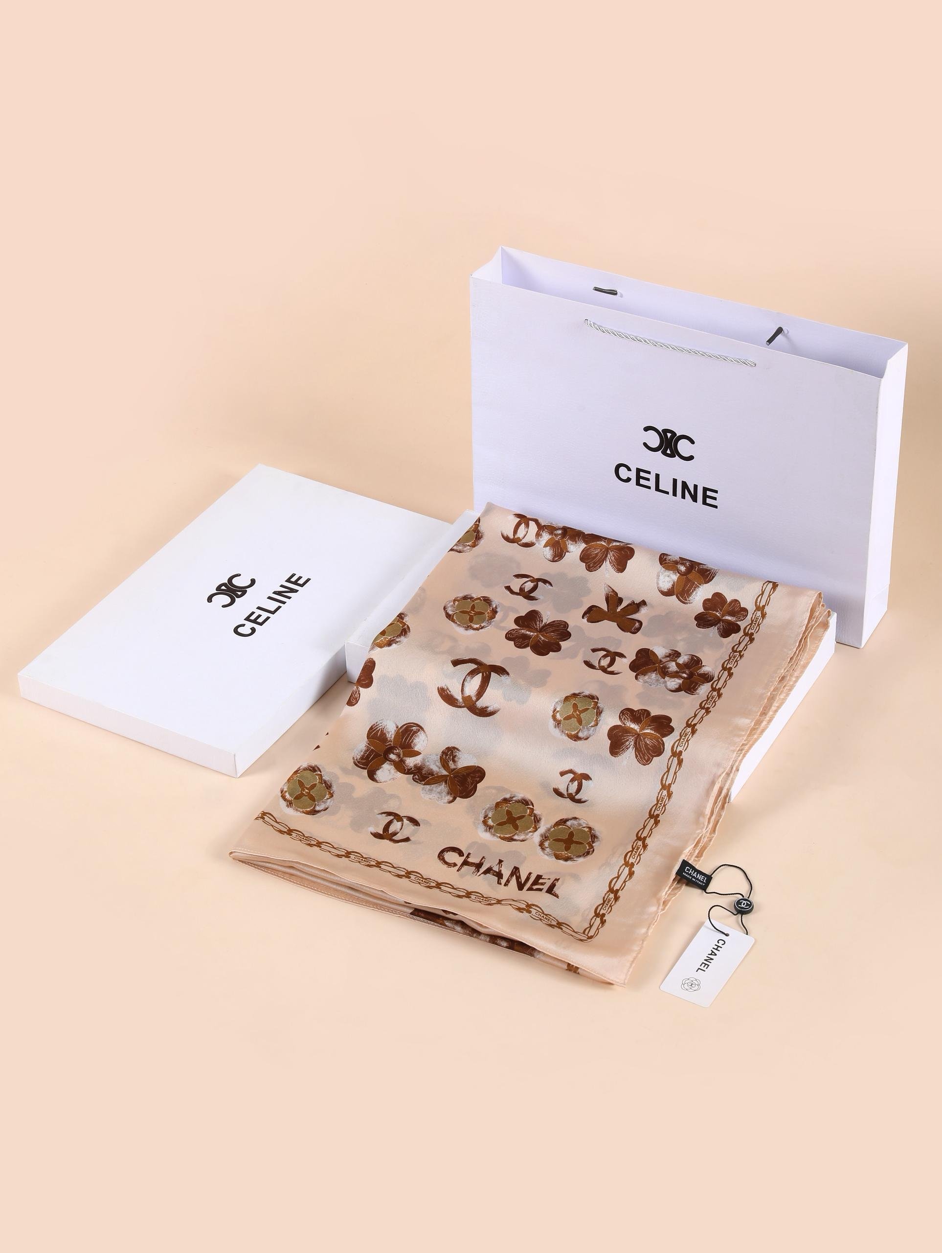 İthal Bej CH Desen Vual İpek Şal (LMS405)