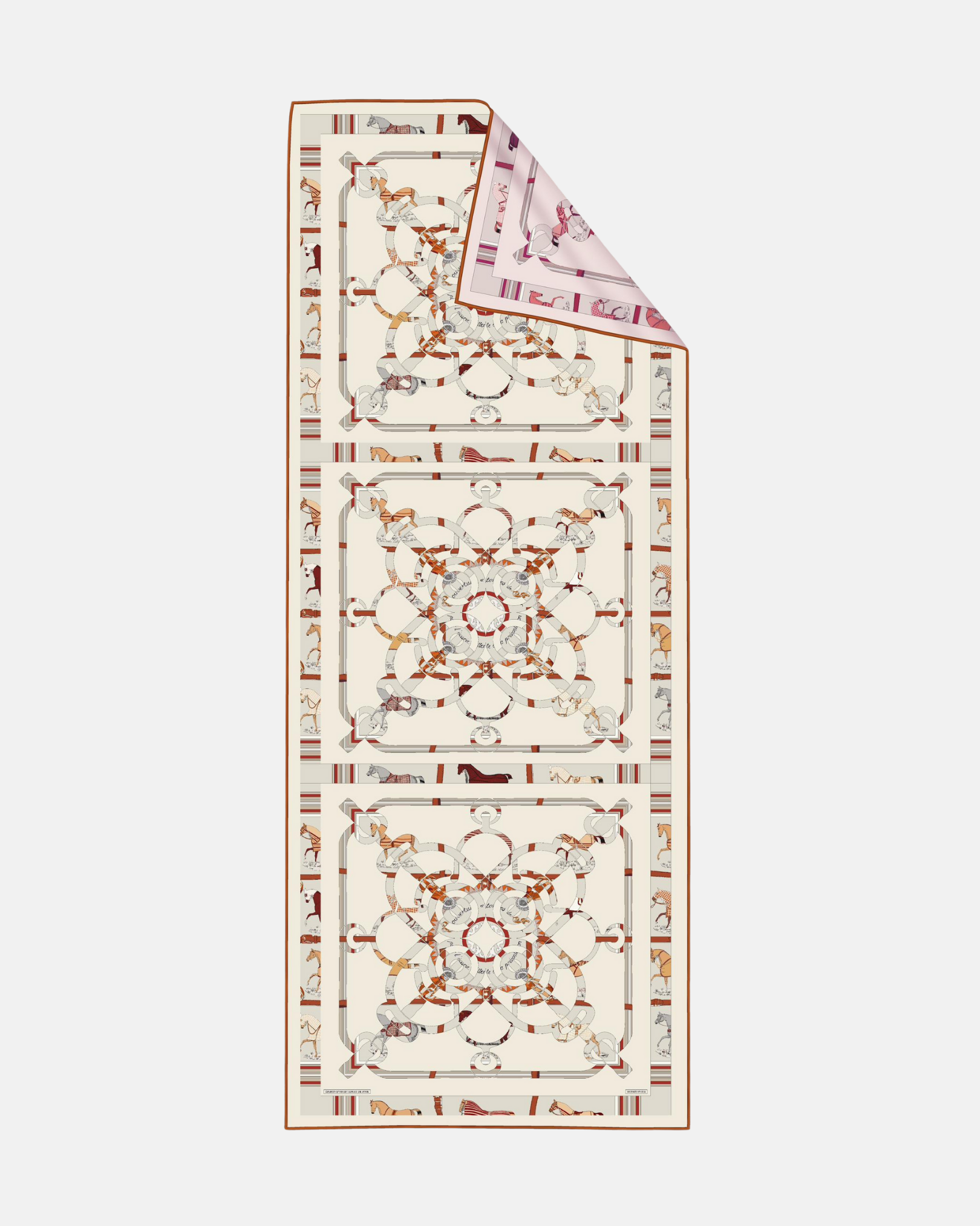 İthal Bej & Pudra H Horse Desen Twill İpek Şal (LMS341)