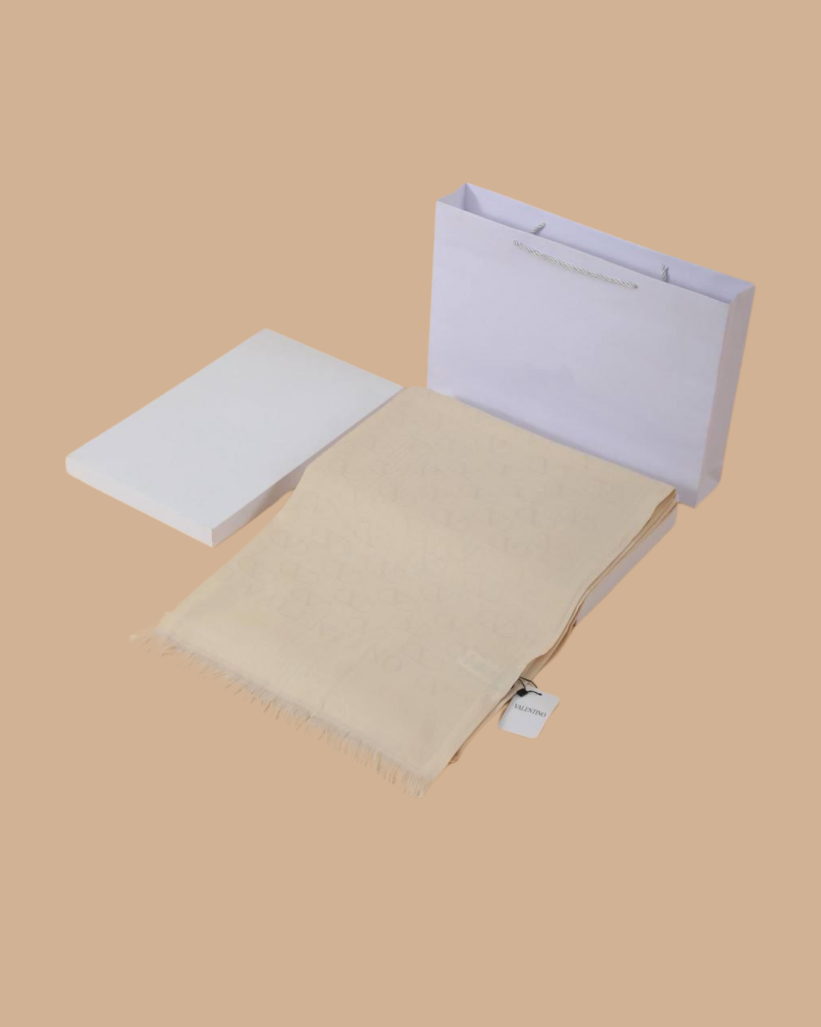 İthal Bej V Desen Yün İpek Şal (LMS99)
