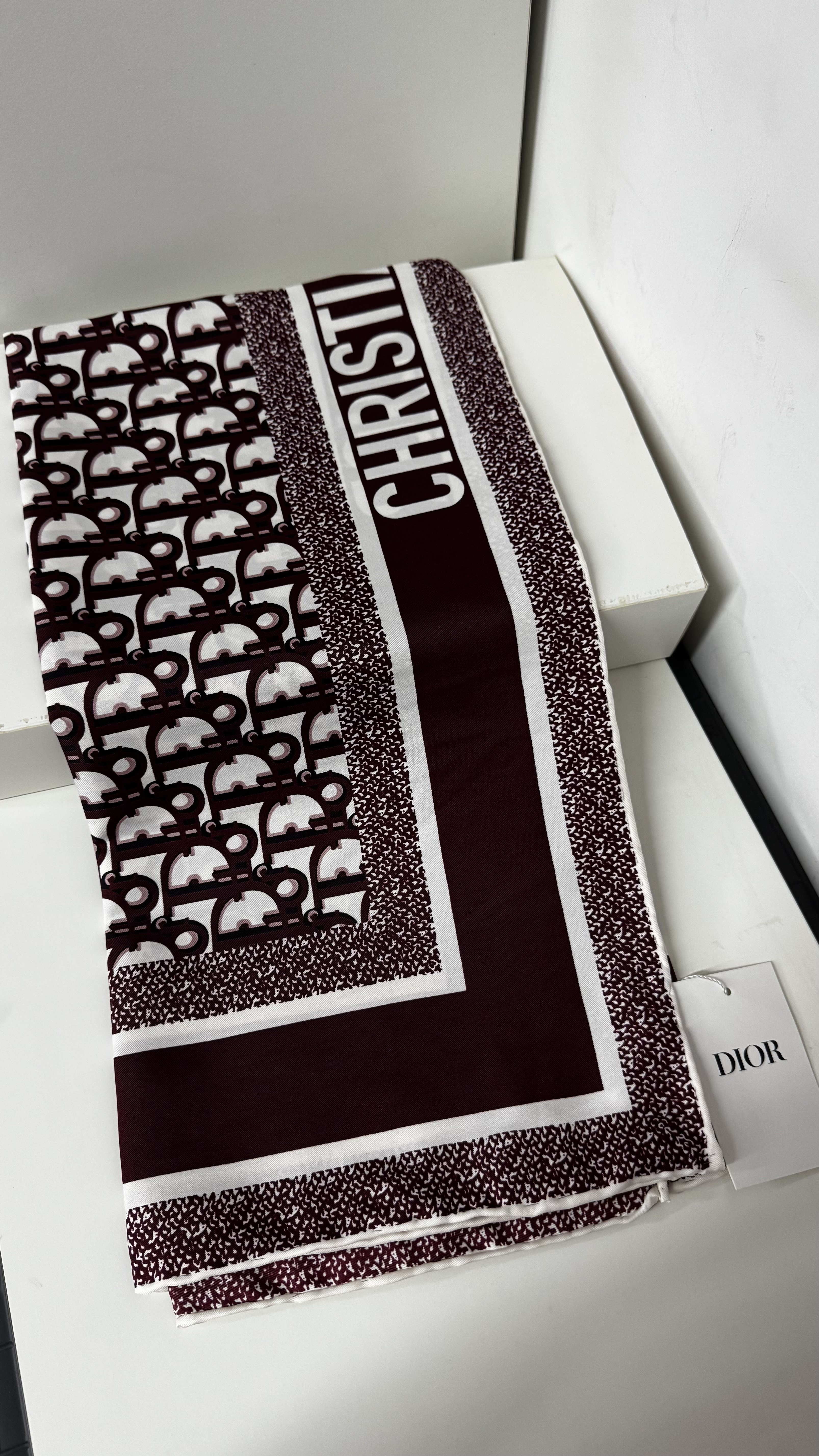 İthal Bordo CD Monogram Desen Twill İpek Eşarp (LUKS-E-Tİ-CDM-06)