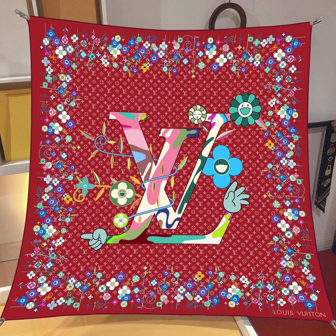İthal Bordo LV Flower Desen Twill İpek Eşarp (LMS587)