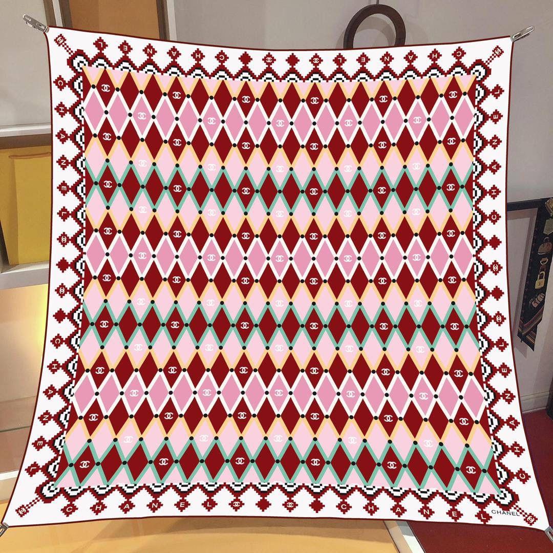 İthal Bordo & Pembe CH Desen Twill İpek Eşarp (LMS584)