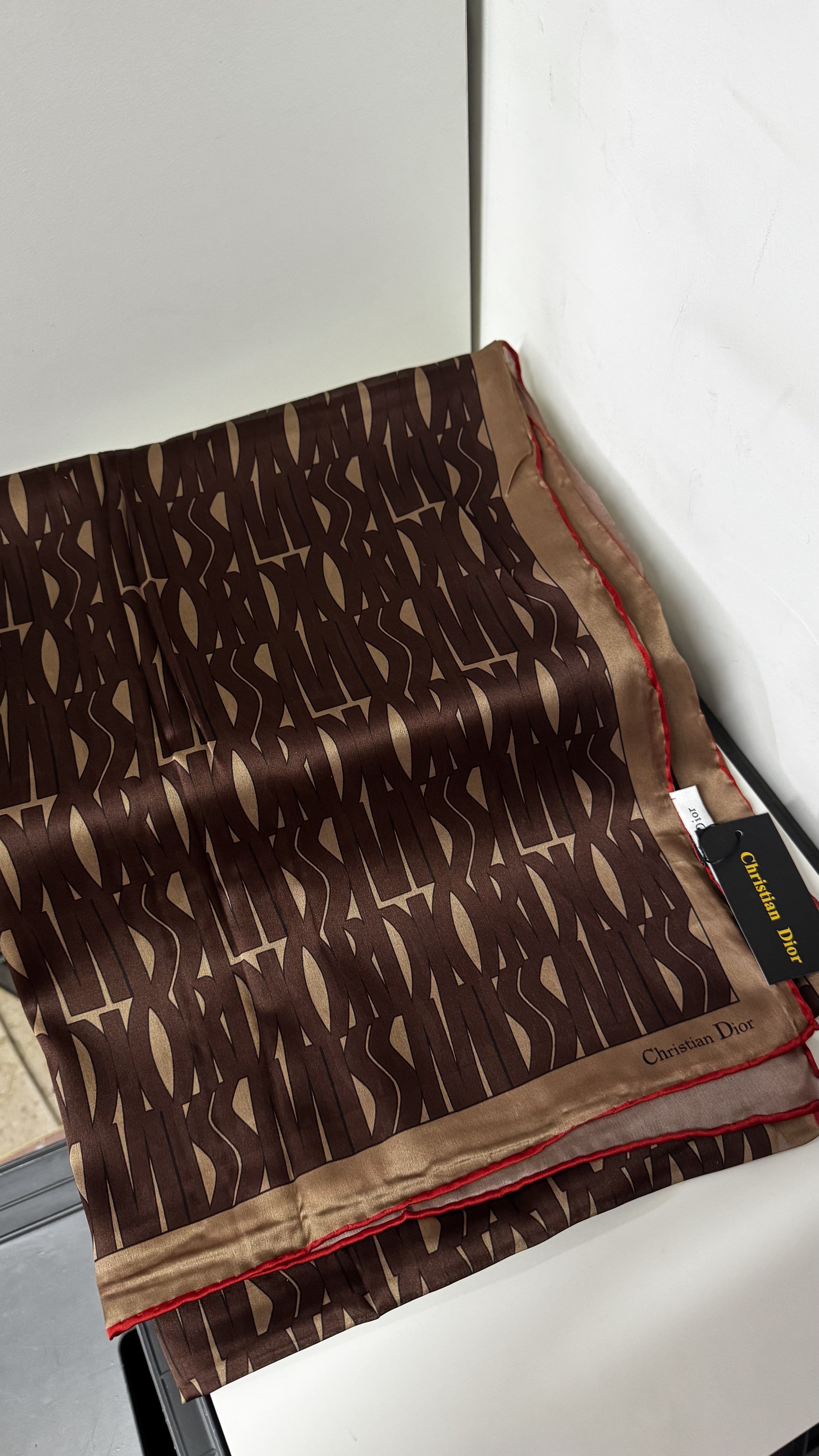 İthal Cappucino & Kahverengi CD Desen İnce Vual İpek Şal (LUKS-SL-Vİ-İCD-04)