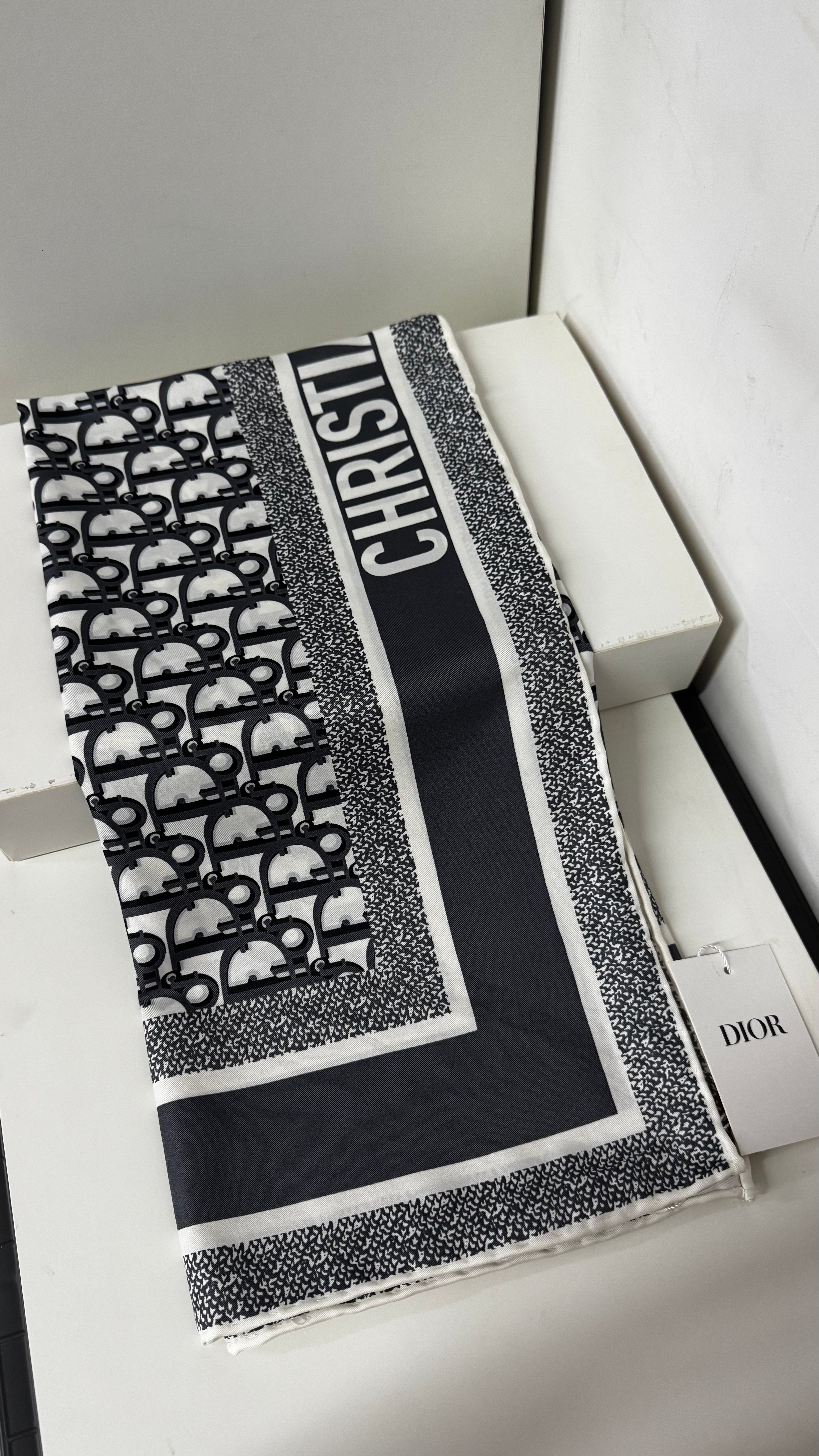 İthal Füme CD Monogram Desen Twill İpek Eşarp (LUKS-E-Tİ-CDM-02)