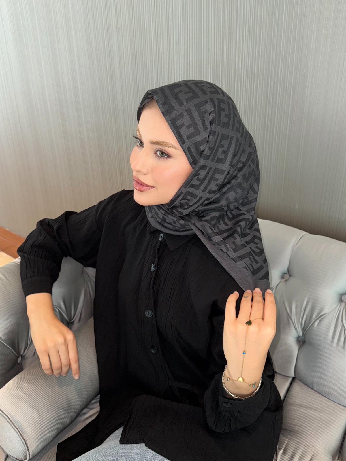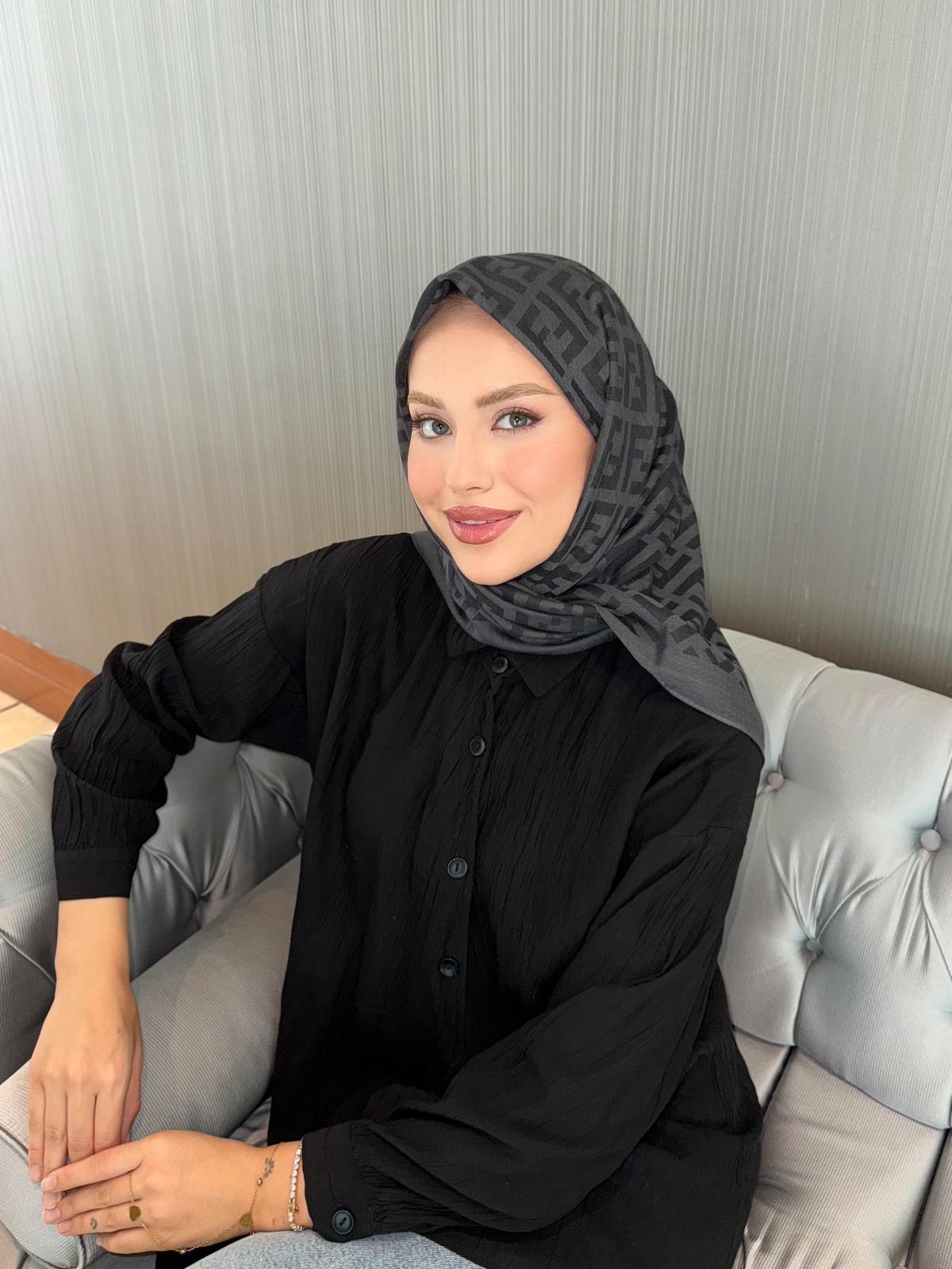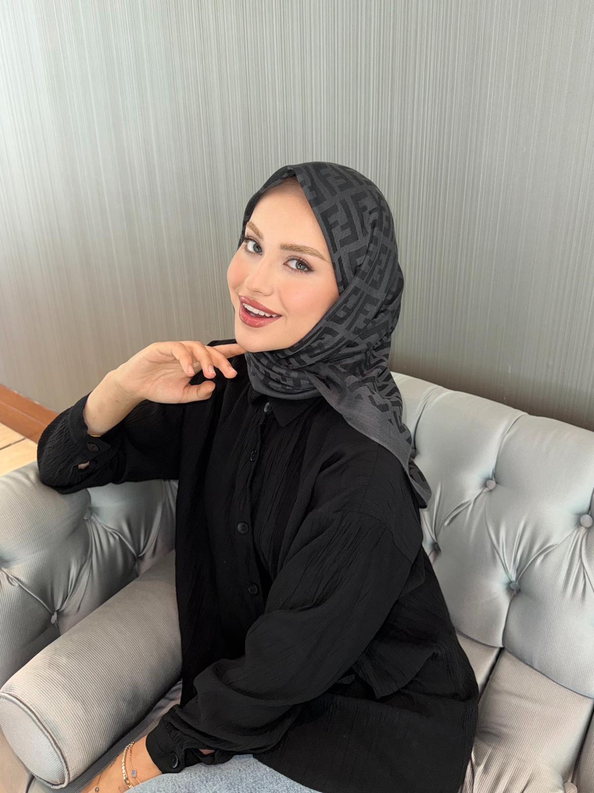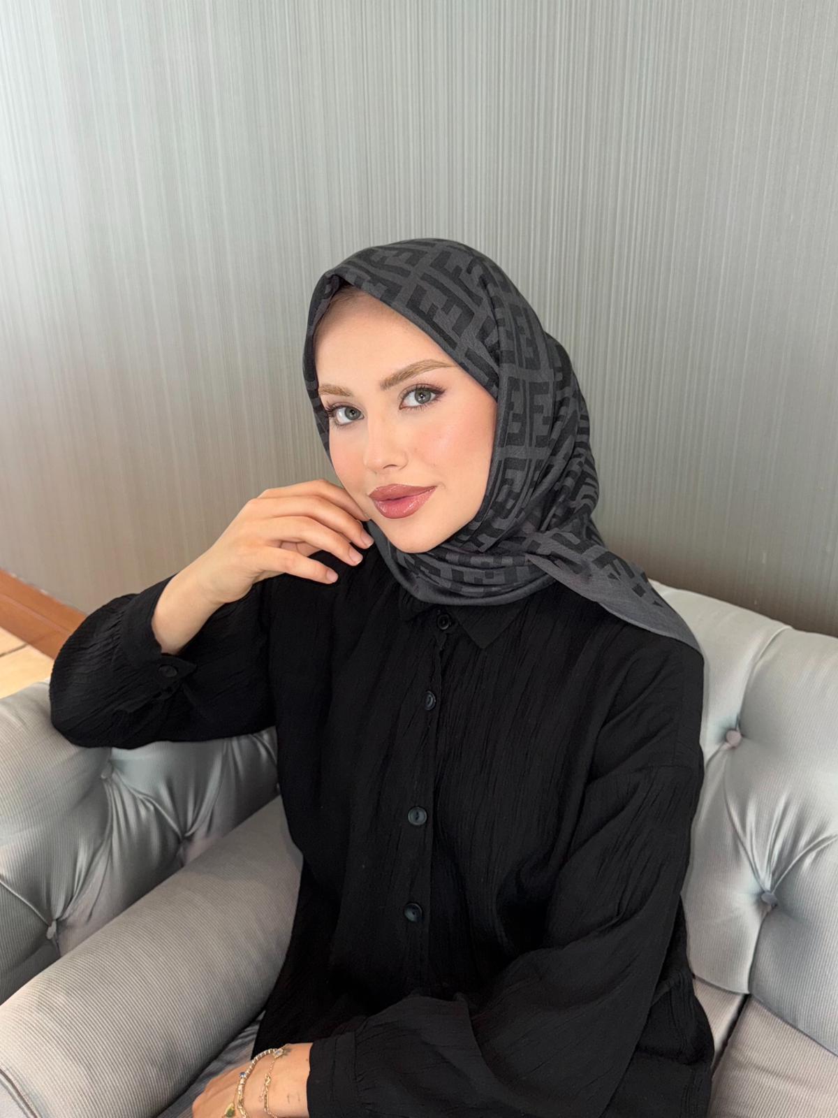 İthal Füme F Desen Yün İpek Eşarp (LMS240)