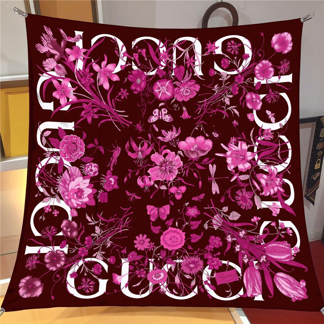 İthal Fuşya G Flower Desen Twill İpek Eşarp (LMS452)