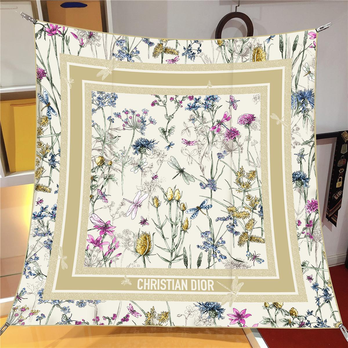 İthal Gold D Flower Desen Twill İpek Eşarp (LMS557)