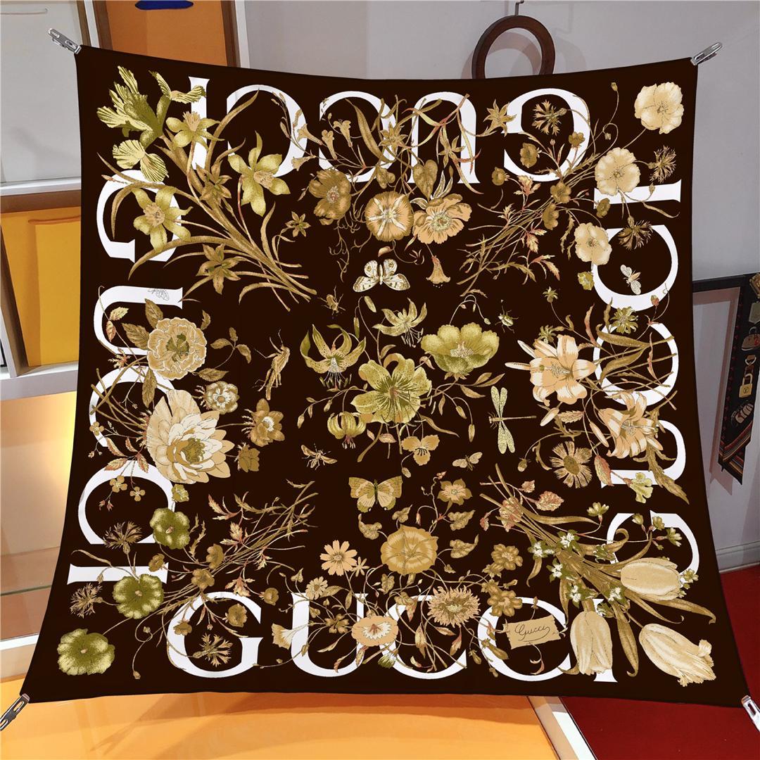 İthal Gold G Flower Desen Twill İpek Eşarp (LMS456)