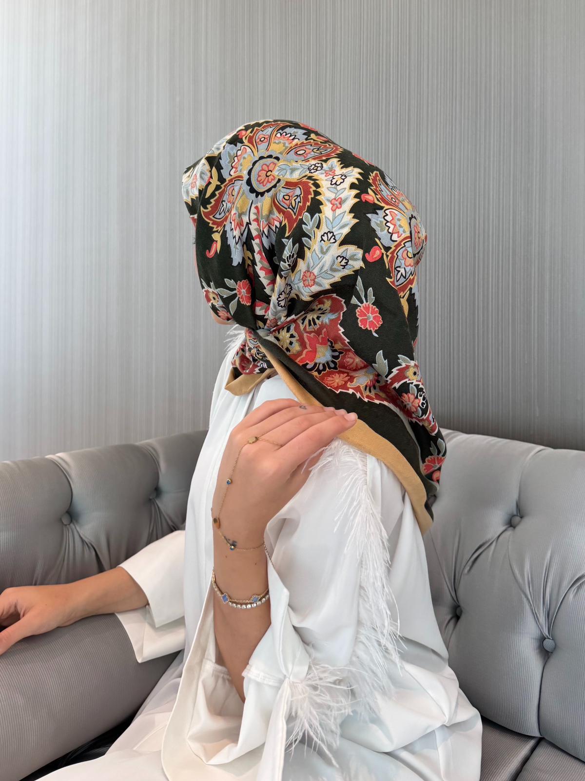 İthal Gold & Siyah E 3 Yün Kaşmir Eşarp (LMS625)