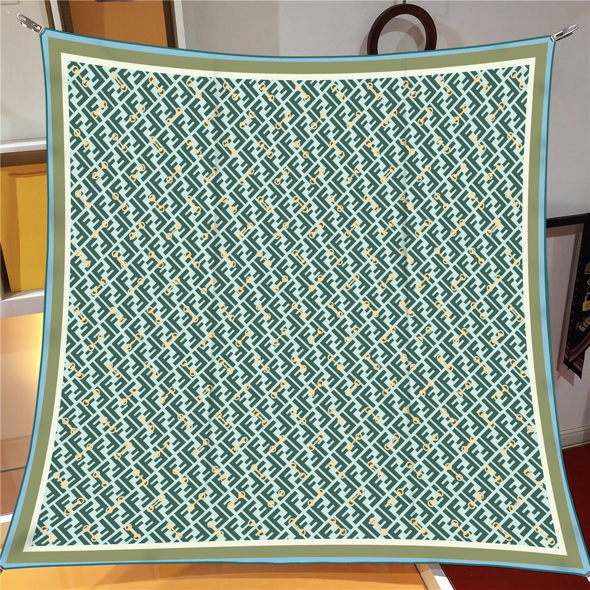 İthal Gold & Yeşil F Kilit Desen Twill İpek Eşarp (LMS499)