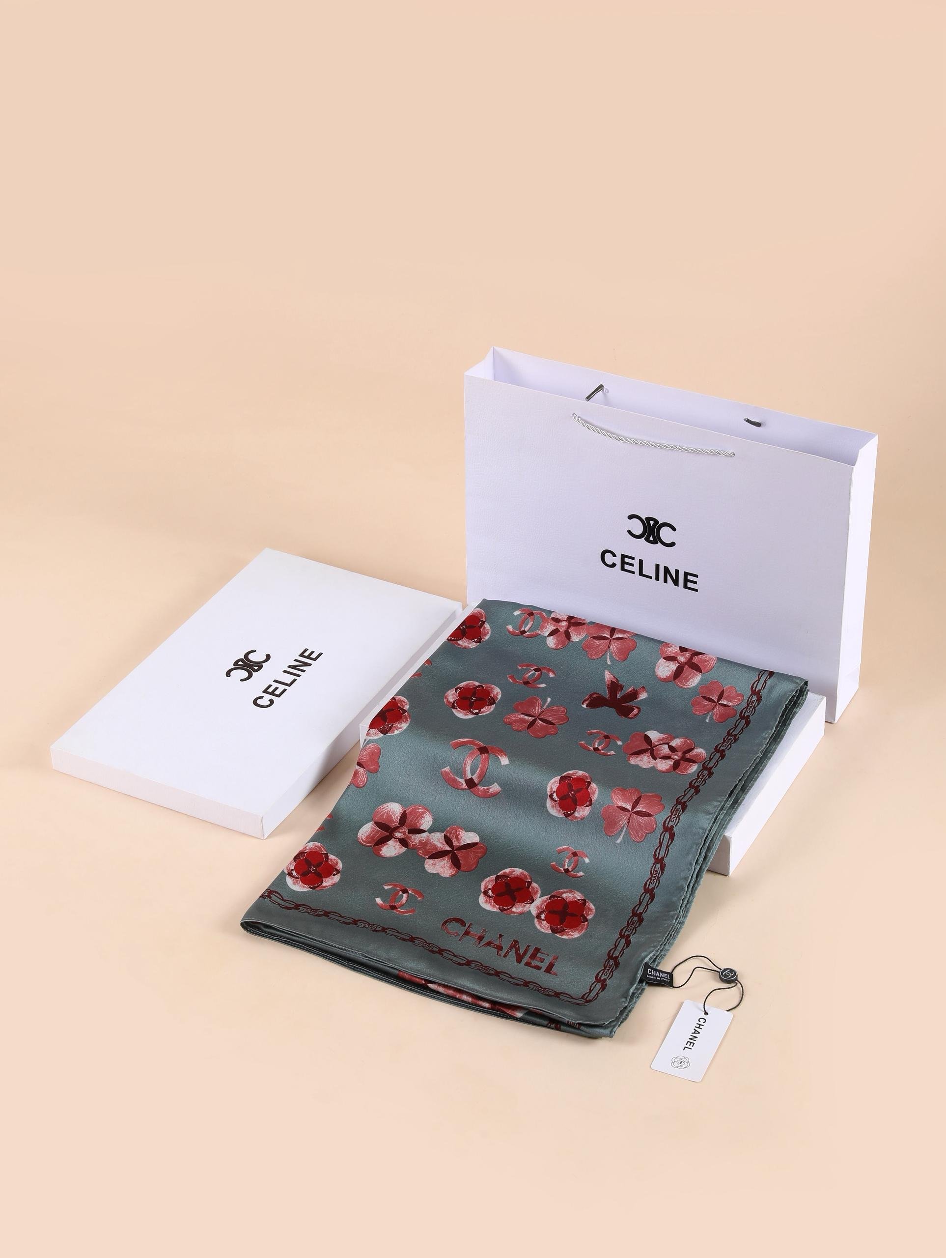 İthal Gri CH Desen Vual İpek Şal (LMS401)