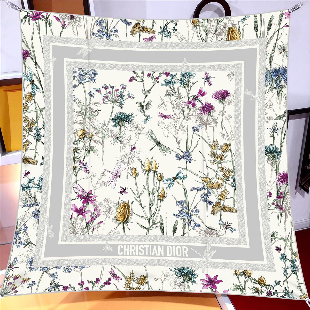 İthal Gri D Flower Desen Twill İpek Eşarp (LMS549)