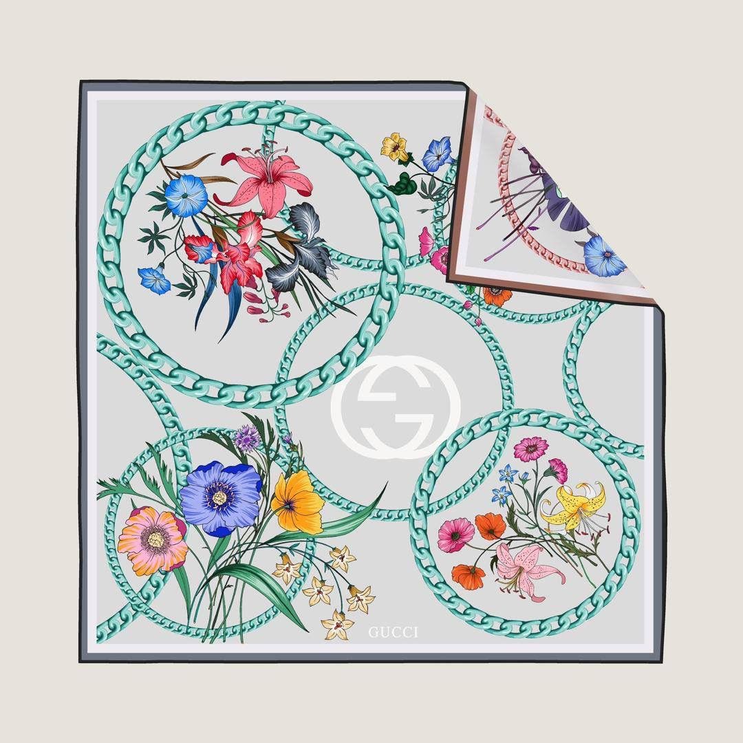 İthal Gri G Zincir Desen Twill İpek Eşarp (LMS562)
