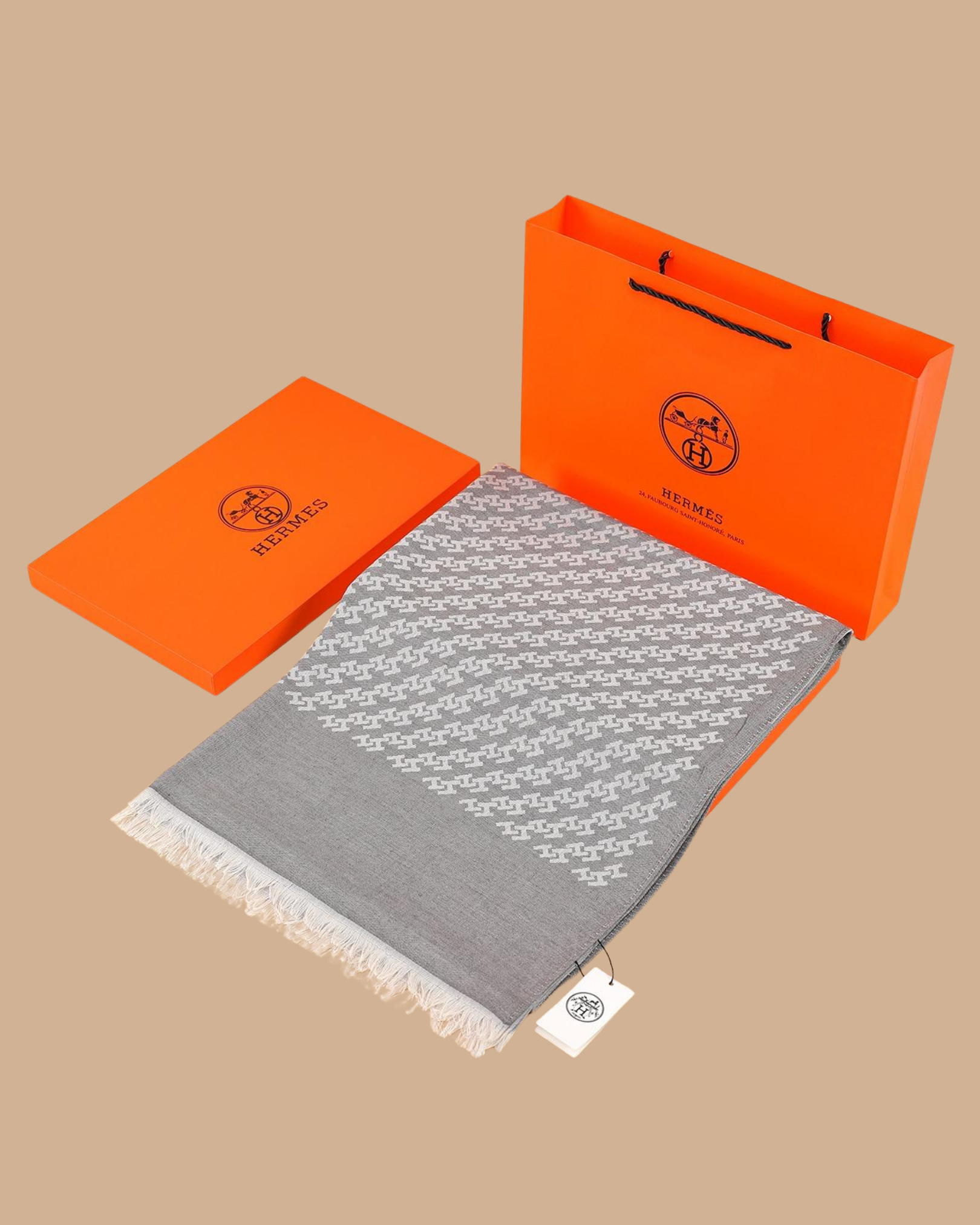 İthal Gri H Desen Yün İpek Şal (LMS126)