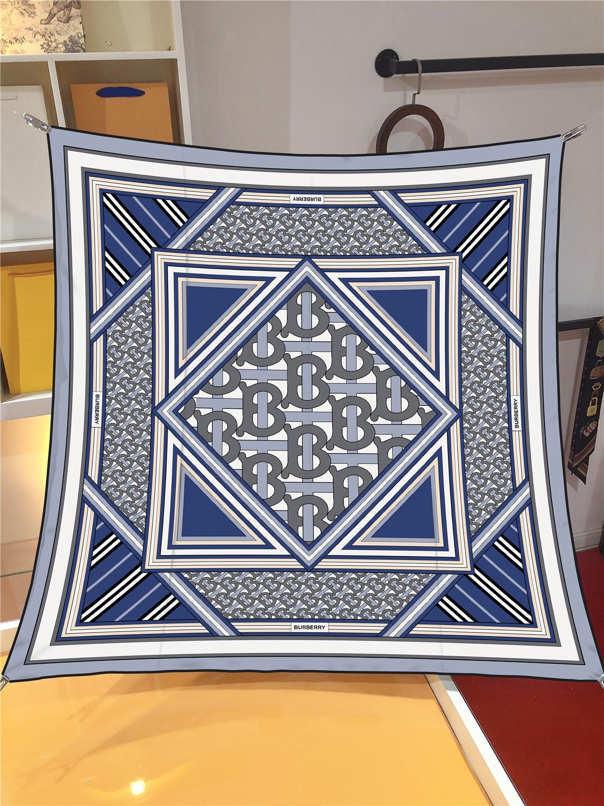 İthal İndigo B Desen Twill İpek Eşarp (LMS518)
