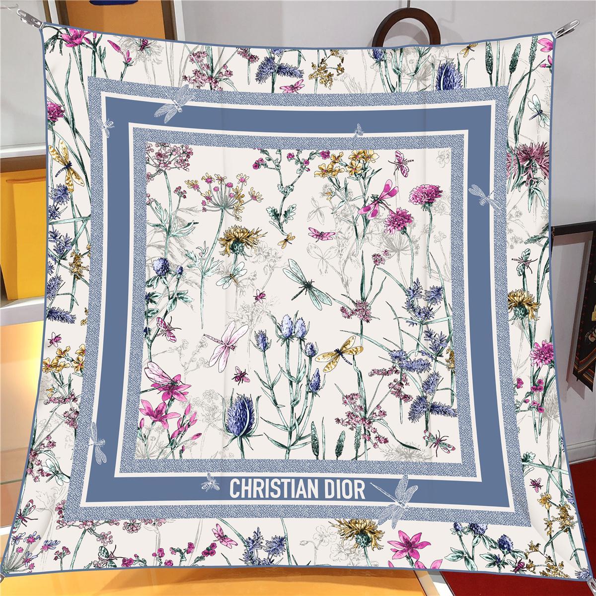 İthal İndigo D Flower Desen Twill İpek Eşarp (LMS553)
