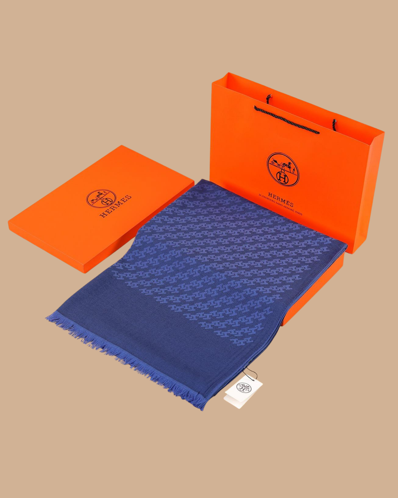 İthal İndigo H Desen Yün İpek Şal (LMS128)