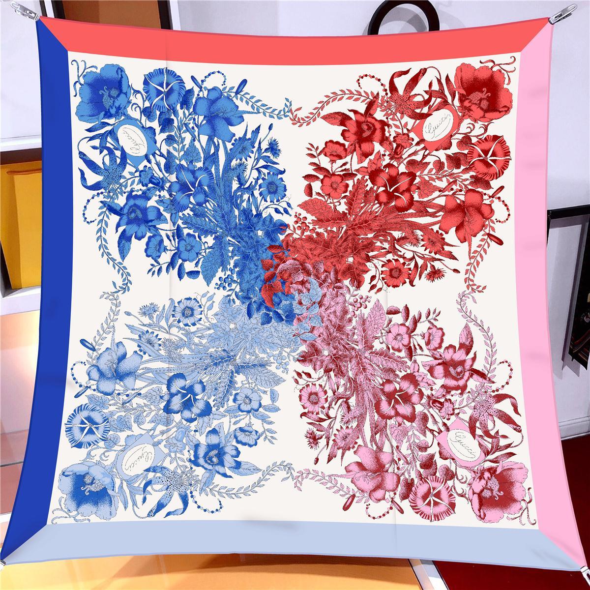 İthal İndigo & Nar Çiçeği G Sarmaşık Twill İpek Eşarp (LMS516)