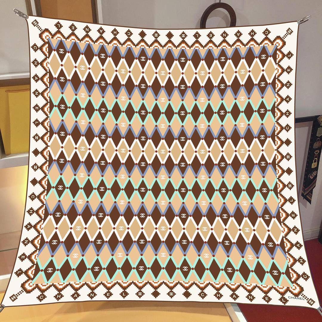 İthal Kahverengi & Bej CH Desen Twill İpek Eşarp (LMS583)