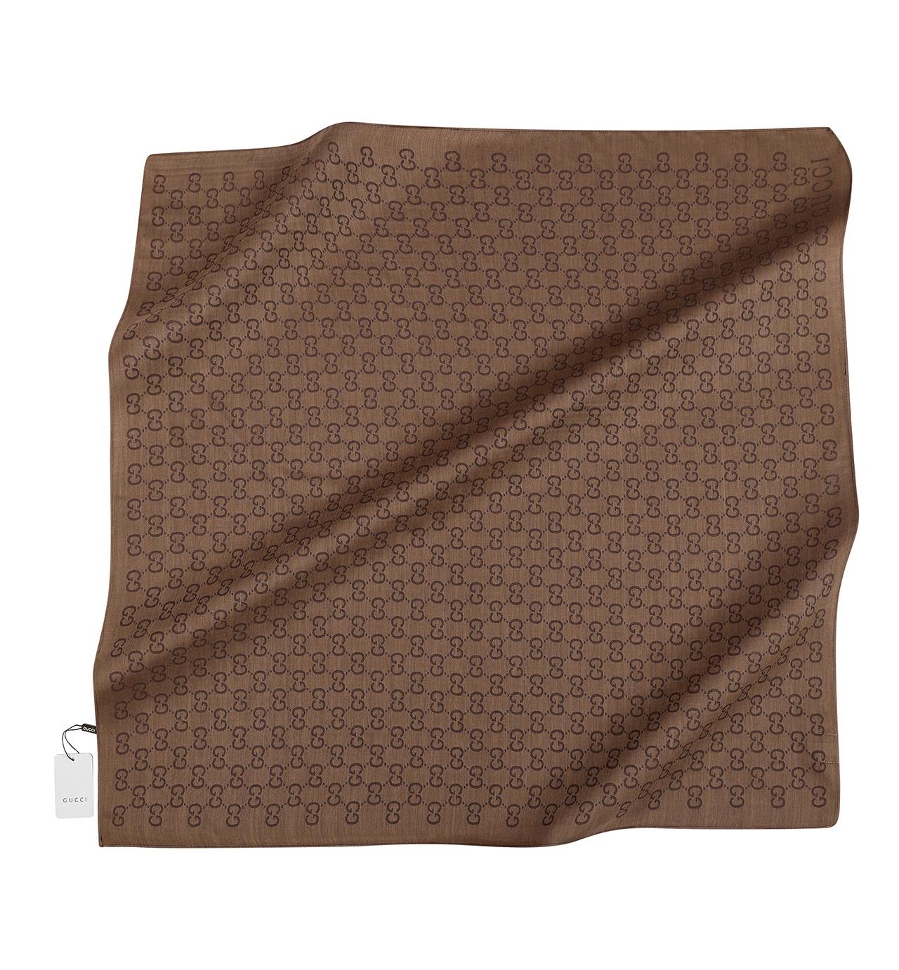 İthal Kahverengi G Desen Yün İpek Eşarp (LMS259)